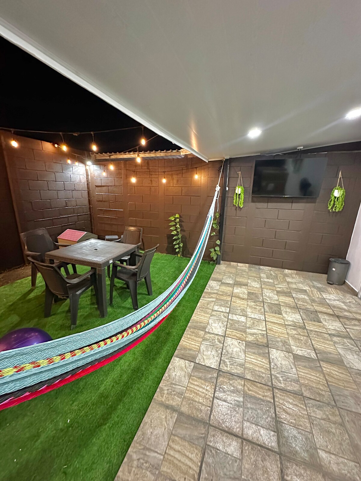 Relájate en nuestro alojamiento. Perfecto para descansar luego de un viaje vacacional o de trabajo . En una zona privada , limpia y ordenada. Cerca de Centro comercial, súper mercado, Dollar city, tienda de conveniencia Pronto, gimnasio, gasolinera, veterinaria, restaurantes y más . Piscina dentro de la residencial . Cuenta con cochera techada para 2 vehículos . Terraza con hamaca. Aire acondicionado en las 2 habitaciones y 1 en la sala . Cuenta de Netflix disponible para tu estadía .