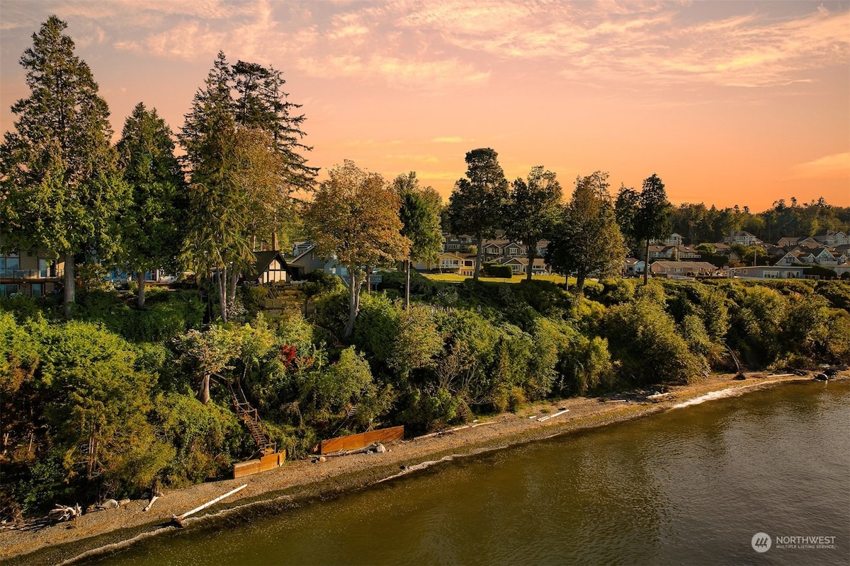 Escápate a nuestra granja FRENTE AL MAR justo fuera de Langley en la hermosa isla Whidbey con Eagles & Highland Cows. Nuestra familia ha vivido aquí desde 1890, y tenemos una maravillosa casa de huéspedes sentada en la orilla alta con vistas de 180 grados de Saratoga Passage, Mount Baker y North Cascades. Con 900 pies cuadrados de sala de estar abierta, una chimenea, cocina completa, lavadora/secadora, cama tamaño king, internet de alta velocidad, 2 televisores, hermosos muebles y fácil acceso a la playa, ¡es la escapada perfecta!