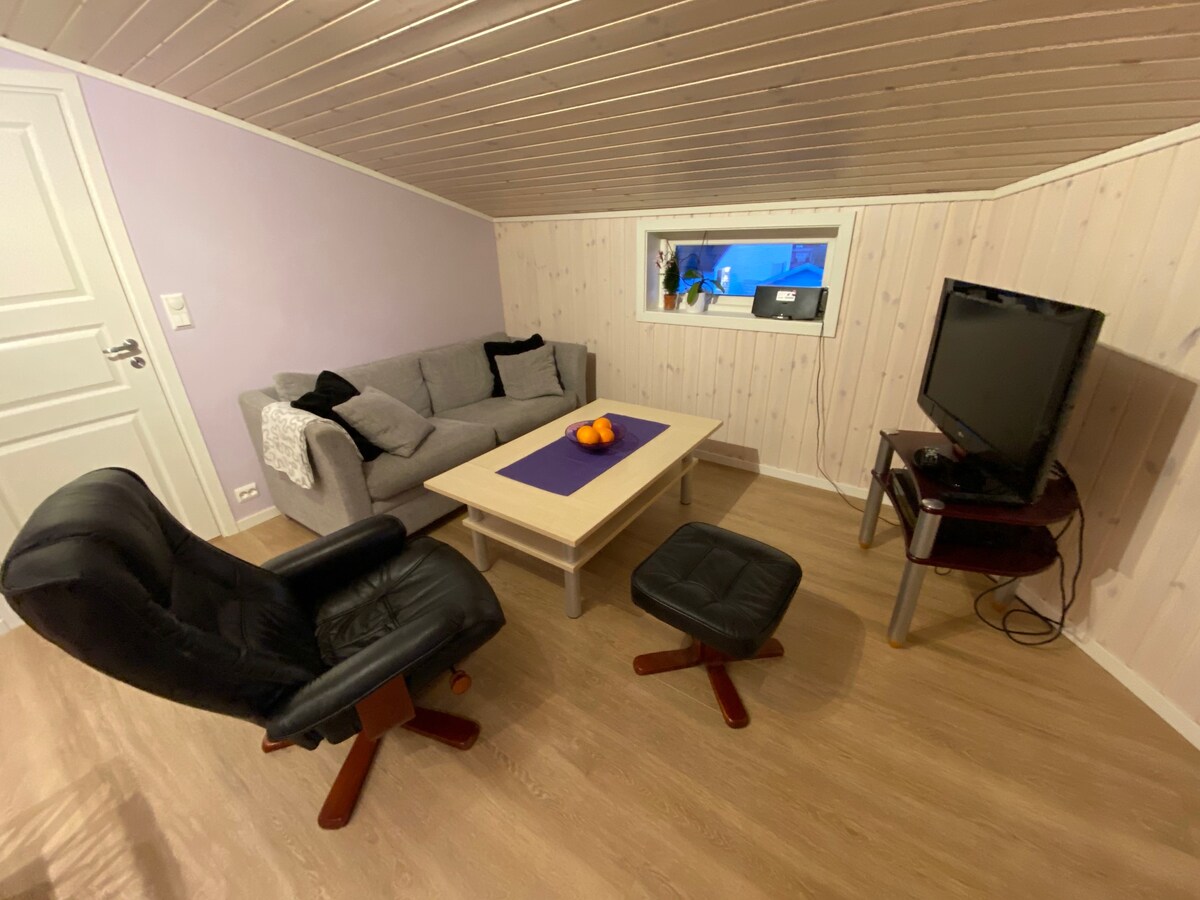 Apartamento, pequeño con entrada independiente, completo con baño y cocina, incluye sofá cama que se puede convertir en cama doble. Céntrico en Ski. A 900 metros del centro de esquí con estación de esquí. A 200 metros de la tienda de comestibles. Bonita y tranquila zona residencial. Estacionamiento justo afuera del apartamento en su propia parcela. El lugar es perfecto para una persona, pero también puede ser adecuado para 2 personas para estadías más cortas, 2-3 días.