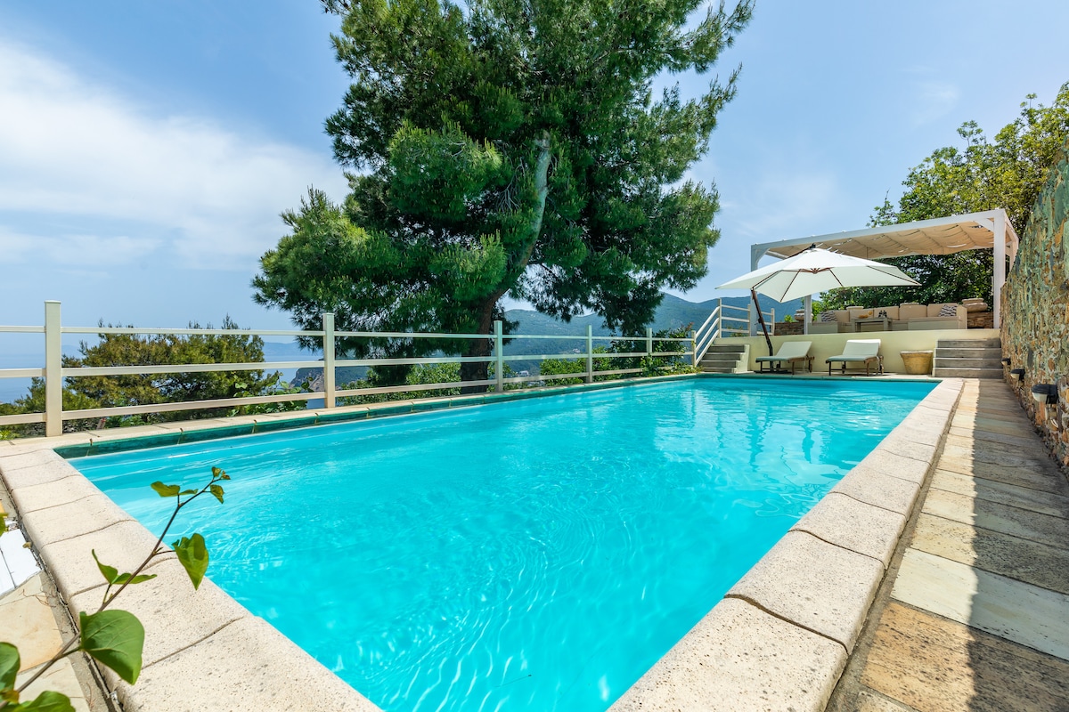 Villa con piscina privada y vistas al Egeo