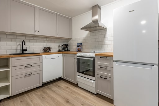 Gran cabaña en un entorno rural. Extra: Espacio disponible en el congelador. 1 bicicleta de uso gratuito. Código por SMS Las cuatro estaciones de esta región ártica ofrecen una amplia gama de experiencias naturales espectaculares. Sol de medianoche en verano, naturaleza que estalla en colores cada otoño, oscuridad con la luz azul del día, auroras boreales (Aurora Borealis) que crujen en el cielo en invierno y primavera, cuando se puede disfrutar de buenas excursiones de esquí en la montaña. Oportunidades únicas de senderismo y pesca para aquellos que aman las experiencias en la naturaleza.