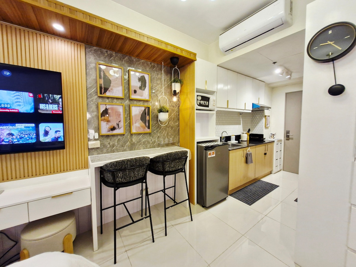 Mi apartamento es una unidad tipo estudio de 34 metros cuadrados ubicada cerca de Sky Ranch y de los mejores restaurantes de la ciudad. Tiene una pared de cristal con una vista perfecta del lago Taal y del volcán. El alquiler de la unidad incluye wifi (25 mbps), TV con Netflix, cine en casa (barra de sonido), aire acondicionado, servicios básicos (ropa de cama, toallas, champú, acondicionador, jabón, pasta de dientes, cepillo de dientes, loción, zapatillas), calentador de agua de ducha y plaza de aparcamiento gratuita cerca de la entrada principal del vestíbulo. El número máximo de huéspedes permitidos es de 4, incluidos los bebés.