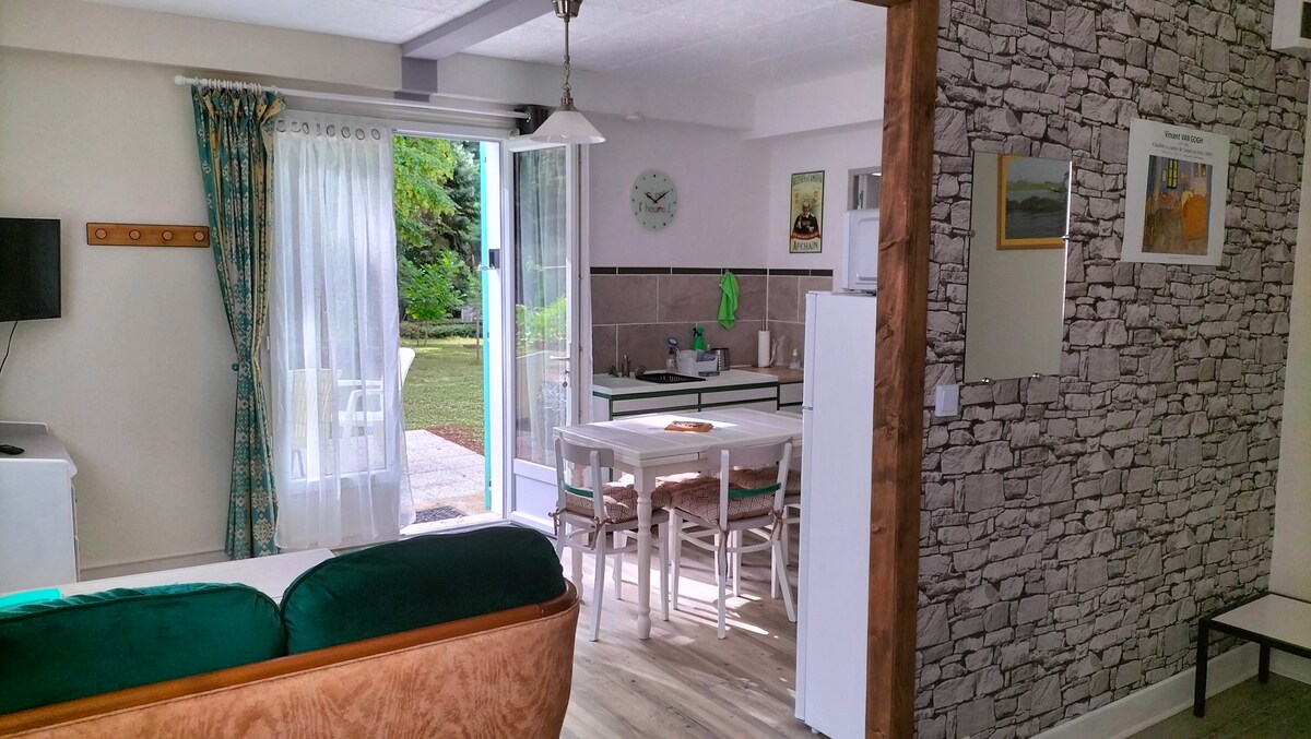 A 5 minutos del centro de Poitiers y situado en una zona tranquila, este apartamento para 2 personas es ideal para una estancia relajante. Sala de estar con TV y Netflix, mesa con bandeja elevable, cocina equipada, cuarto de baño con ducha. Jardín privado sin vecinos, muebles de jardín elegantes y jacuzzi climatizado con ducha al aire libre son las grandes ventajas de este encantador apartamento. Ya sea que esté en pareja o con amigos, le permitirá descubrir la región de Poitiers.