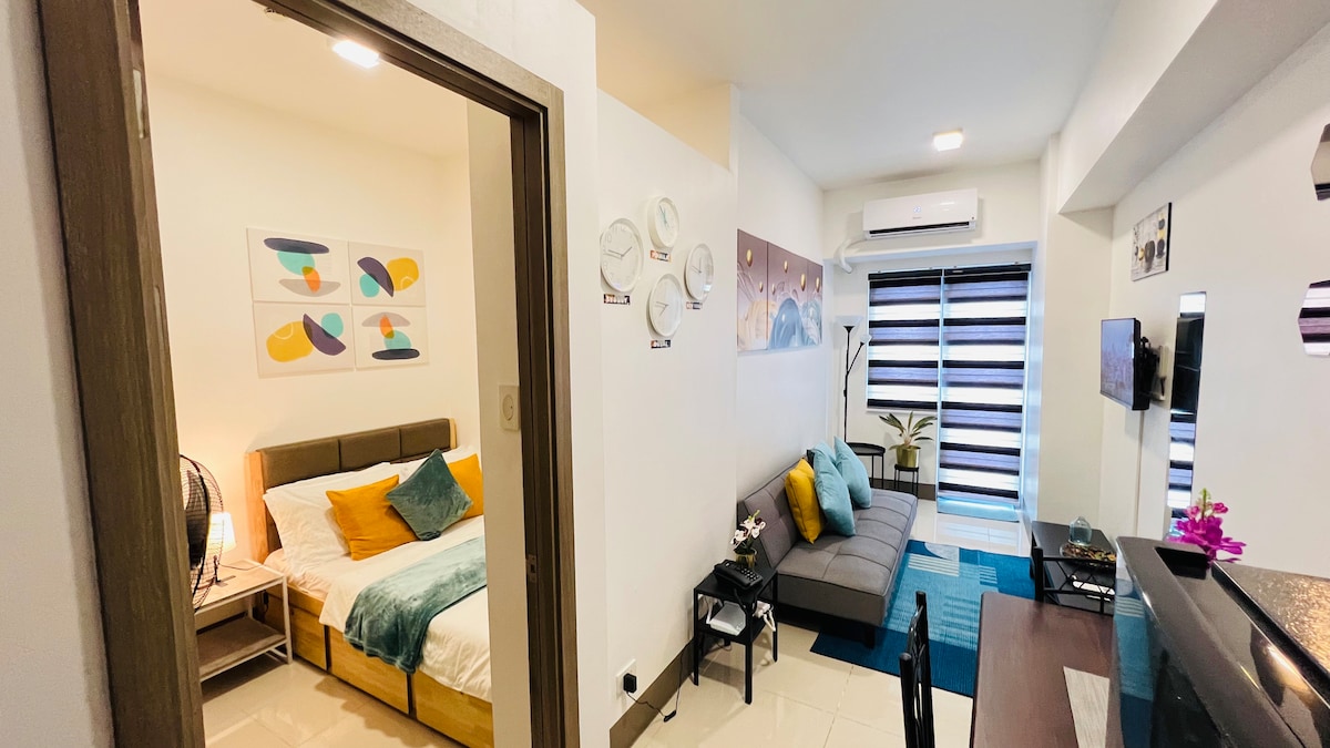The Horizen Disfruta de la comodidad moderna en nuestra suite familiar de 1 dormitorio totalmente amueblada en Fame Residences Tower 1, Mandaluyong. A pocos pasos de SM Megamall, Shangri-La Plaza y Greenfield District, es un refugio urbano ideal. Situado en una planta alta, disfruta de impresionantes vistas de los servicios y el horizonte de Makati. La unidad cuenta con una cocina totalmente equipada, una acogedora sala de estar y un dormitorio sereno para una estadía tranquila. ¡Ideal para familias y exploradores de la ciudad!