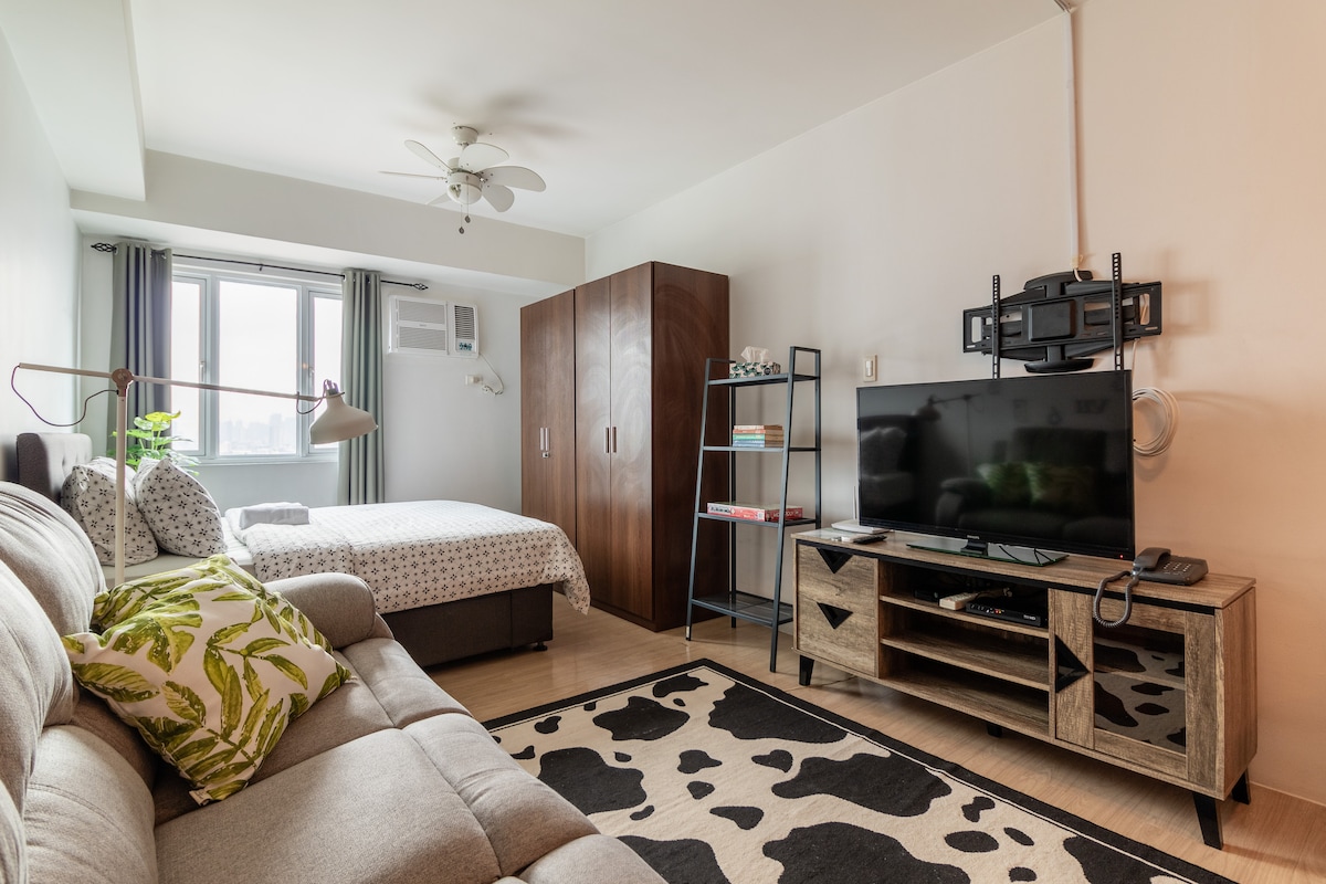 ¡Bienvenido a nuestro espacioso Tahanan de inspiración mediterránea y contemporánea, un estudio de 25 metros cuadrados en Mandaluyong, a pocos pasos de Rockwell y Powerplant Mall! Hemos diseñado nuestro espacio para proporcionar una estancia cómoda mientras capturas impresionantes vistas del atardecer, así como vistas de Mandaluyong y Makati desde nuestro balcón. Ya sea que estés de visita por trabajo, placer o una combinación de ambos, nuestro Airbnb bien equipado es la base perfecta para explorar las vibrantes ciudades de Mandaluyong y Makati.