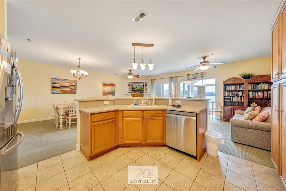 Come savor the breathtaking lake and mountain views and experience the best of Bernards Landing in this condo! Enjoy the best amenities - high end stainless appliances, big flat screen TVs, keypad door access – and the list goes on! River Rock Tiled Shower and Silestone Counters! Bernard’s Landing offers so much – 2 outdoor/1 indoor pool, hot tub, beach, gym, sauna, boat launch, courtesy dock, tennis, pickle ball, racquetball courts, The Landing Restaurant, and more!