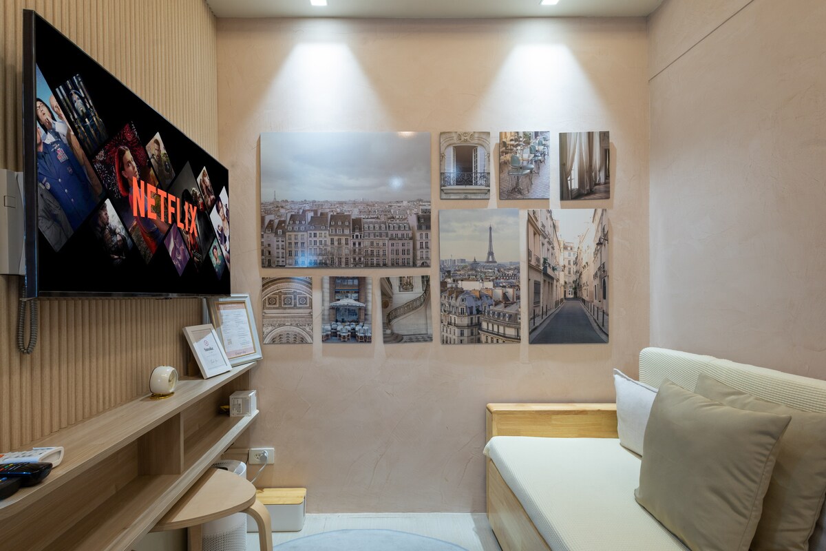 ¡Hola, soy Bella! Disfruta de una experiencia de lujo en este céntrico alojamiento frente a la Terminal 3, Resorts World, puestos de comida, salones y mucho más. Estudio de 38 metros cuadrados con balcón. Completo con elementos básicos, ducha fría y caliente, utensilios de cocina completos y se puede cocinar. • Acceso gratuito a los servicios (gimnasio, piscina, spa). • La velocidad del wifi es de 70-100 mbps, buena para Zoom, etc. • Netflix/HBO-Go/YouTube