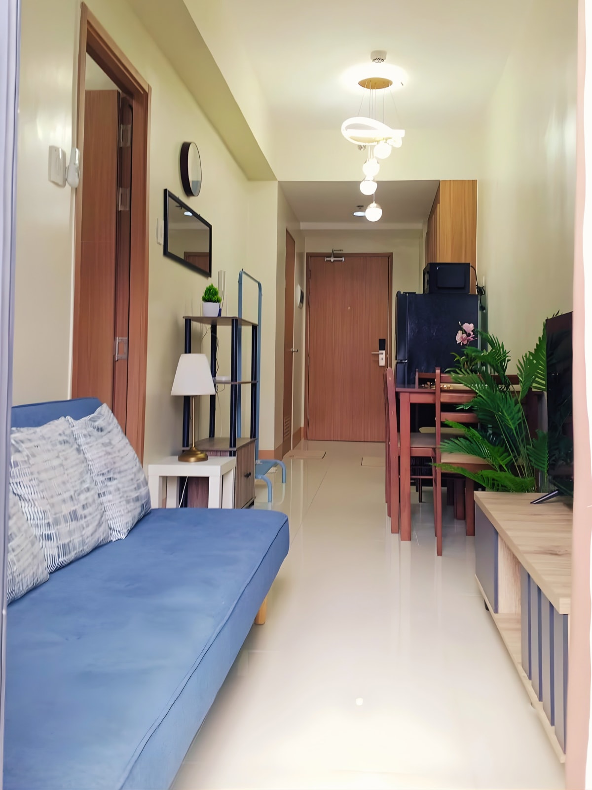Despierta con las palmeras tropicales como tu vista desde tu cama a través de la puerta de vidrio. Cuenta con cama tamaño queen y colchón orto de calidad hotelera, almohadas y ropa de cama para una experiencia de lujo para dormir. Equipado con tus necesidades básicas de cocina pequeña. A 800 metros del centro comercial Mall of Asia, a 20 minutos del aeropuerto, teatros, Explanada, Con alfamart, Starbucks y restaurantes en la planta baja. La piscina es accesible por una tarifa. Salta directamente desde tu balcón a la piscina después del registro previo y accede fácilmente a tu unidad por un paso dedicado.