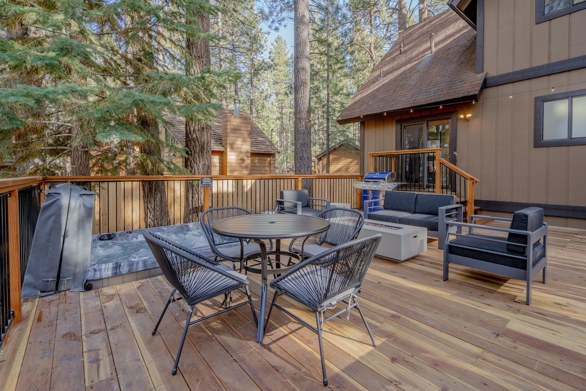 ¡Te damos la bienvenida a Quiet Pine Cabin! Lleva tu escapada a Big Bear al siguiente nivel con esta linda cabaña de estilo Gambrel, ubicada en el borde del Bosque Nacional con acceso directo a senderos y a poca distancia en coche del pueblo y los remontes. Disfruta de las modernas comodidades mejoradas, sin perder el encanto acogedor de la cabaña. La tranquila terraza trasera (equipada con una sala de estar al aire libre, chimenea, parrilla y jacuzzi), mira hacia el bosque, lo que te permite relajarte y sumergirte en la naturaleza, desde la observación de aves hasta la observación de estrellas.