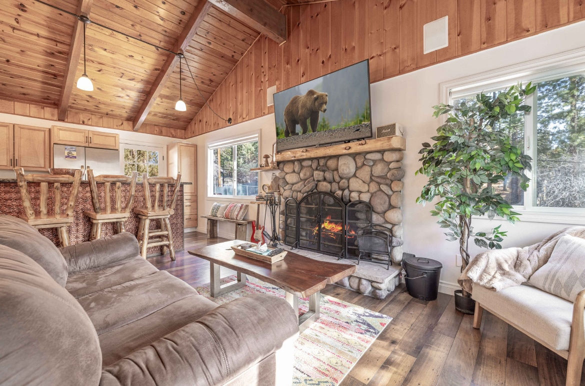 Ubicada a pocos pasos del famoso Snow Summit Resort, esta hermosa cabaña de madera combina el encanto rústico con la comodidad moderna. Disfruta de la calidez de la calefacción central y mantente conectado con wifi ultrarrápido. Dile adiós a las tarifas de estacionamiento y los traslados abarrotados: el centro vacacional está a la vuelta de la esquina. Tres dormitorios grandes y dos baños adornados con impresionantes acentos de troncos, encontrarás una mezcla perfecta de comodidad y ambiente de montaña en esta acogedora cabaña. Lic# VRR-2025-2191