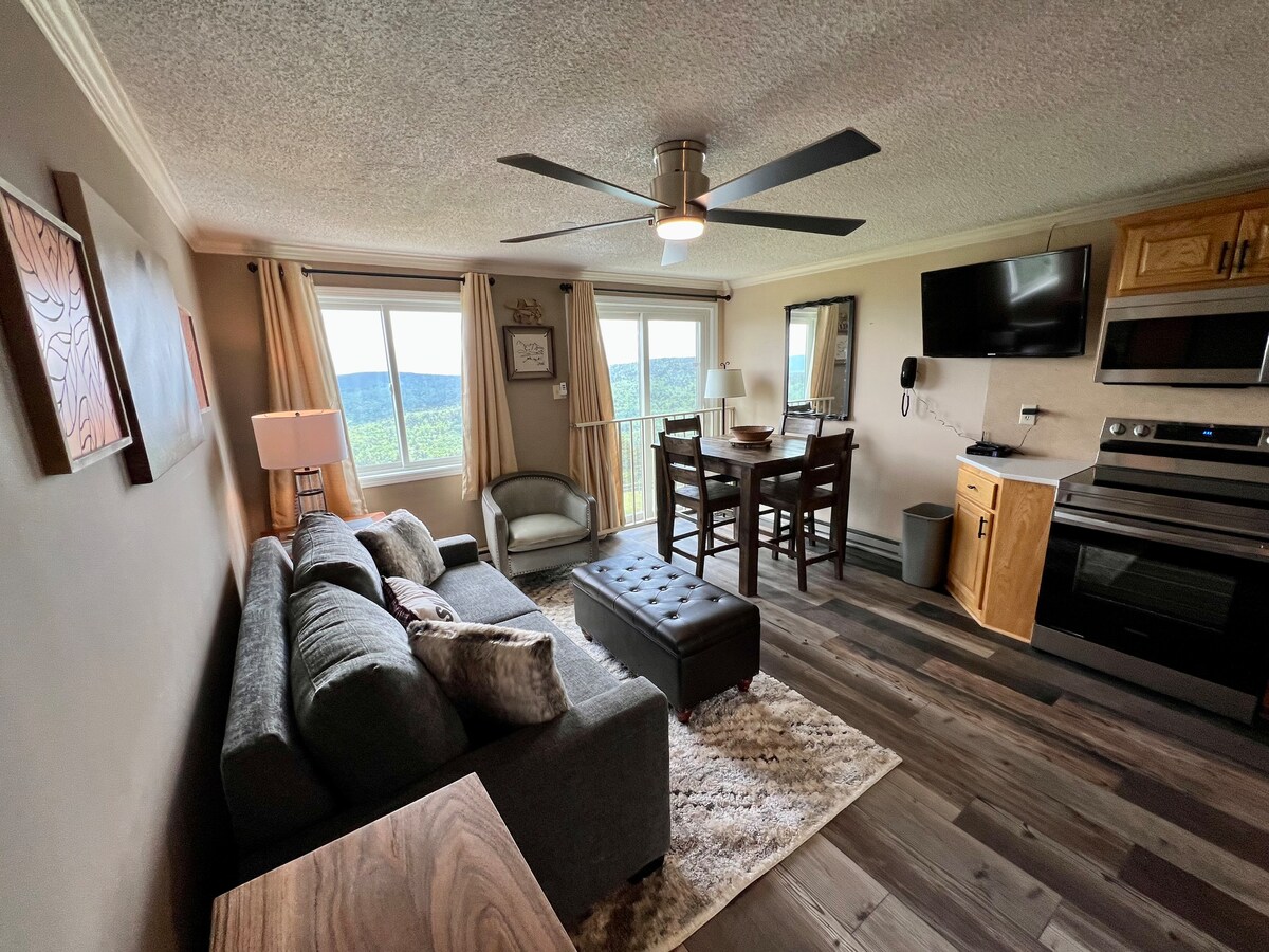 La mejor ubicación en Snowshoe en el recientemente renovado Mountain Lodge (a partir de 2025), ¡a solo unos pasos del ascensor Ballhooter! Decoración moderna, nueva terraza, pisos de madera, cocina abierta renovada y sala de estar; ¡vista al ascensor, al pueblo y a la pendiente! Almacenamiento de esquís y botas en el condominio ¡Incluye café y cacao! Capacidad para 4 personas, cama tamaño queen y sofá cama. 10% de descuento en alquiler de esquís Estacionamiento gratuito PLATO Nuevos televisores inteligentes Wi-Fi mejorado Aire acondicionado en LR en verano Juegos Gimnasio nuevo Nintendo clásica