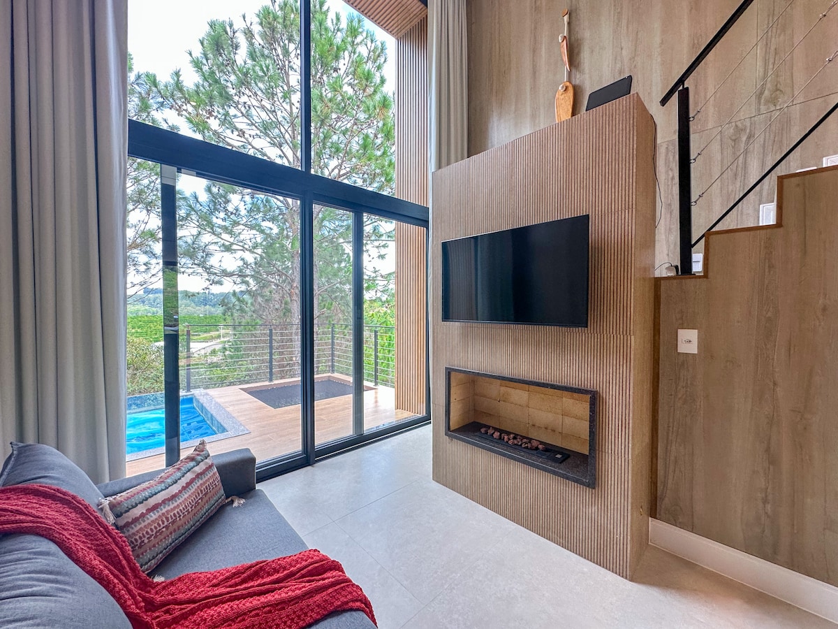 Loft Luxuoso Piscina Privativa Lareira e Vista
