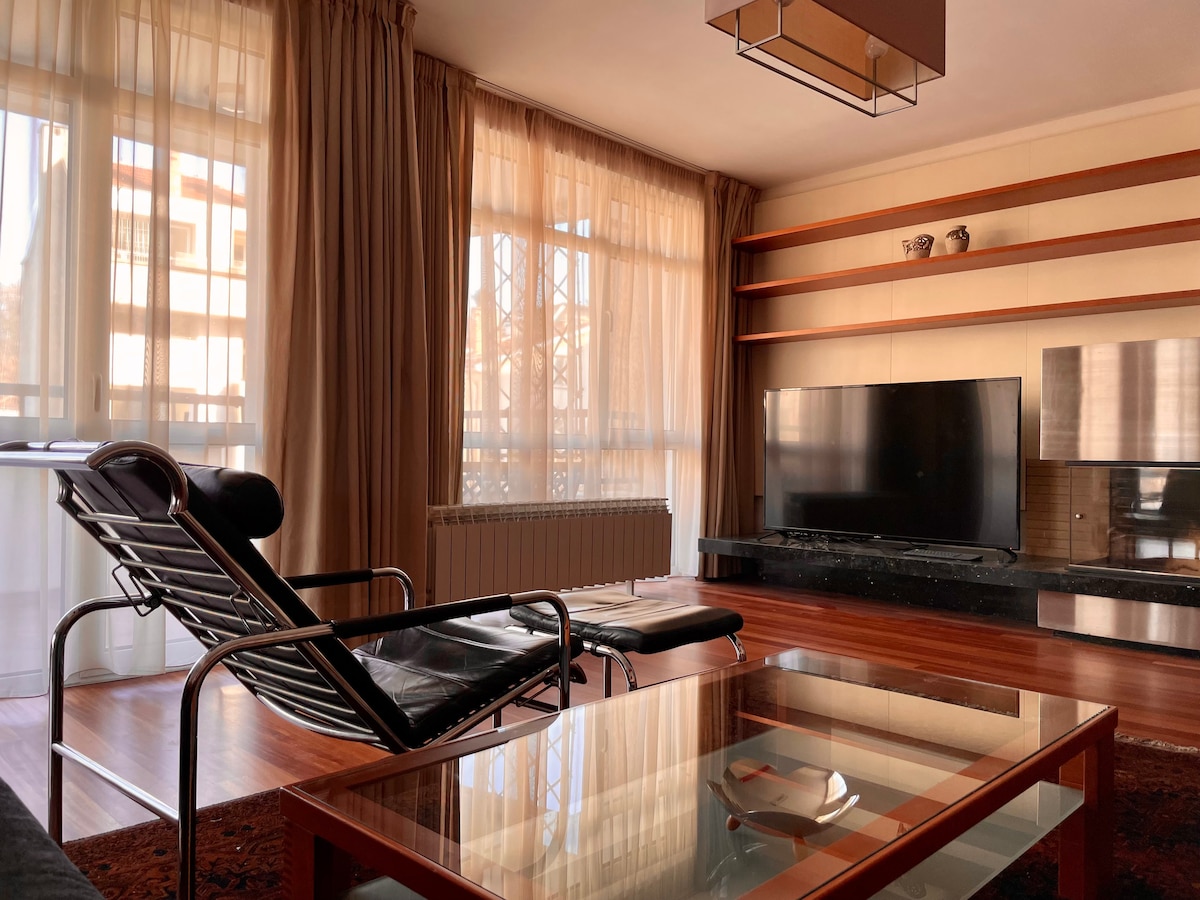 Este alojamiento tiene una ubicación estratégica: ¡será muy fácil planear tu visita! En el centro superior, una gran terraza con vistas panorámicas a la montaña Vitosha está a tu disposición para que puedas relajarte en casa. Ascensor en el edificio. El aparcamiento en el edificio también está disponible si lo solicitas con antelación. El metro está a un minuto. Edificio nuevo y mantenido rodeado de parques, buenos restaurantes, bares y cafeterías en uno de los barrios de lujo del centro principal.
