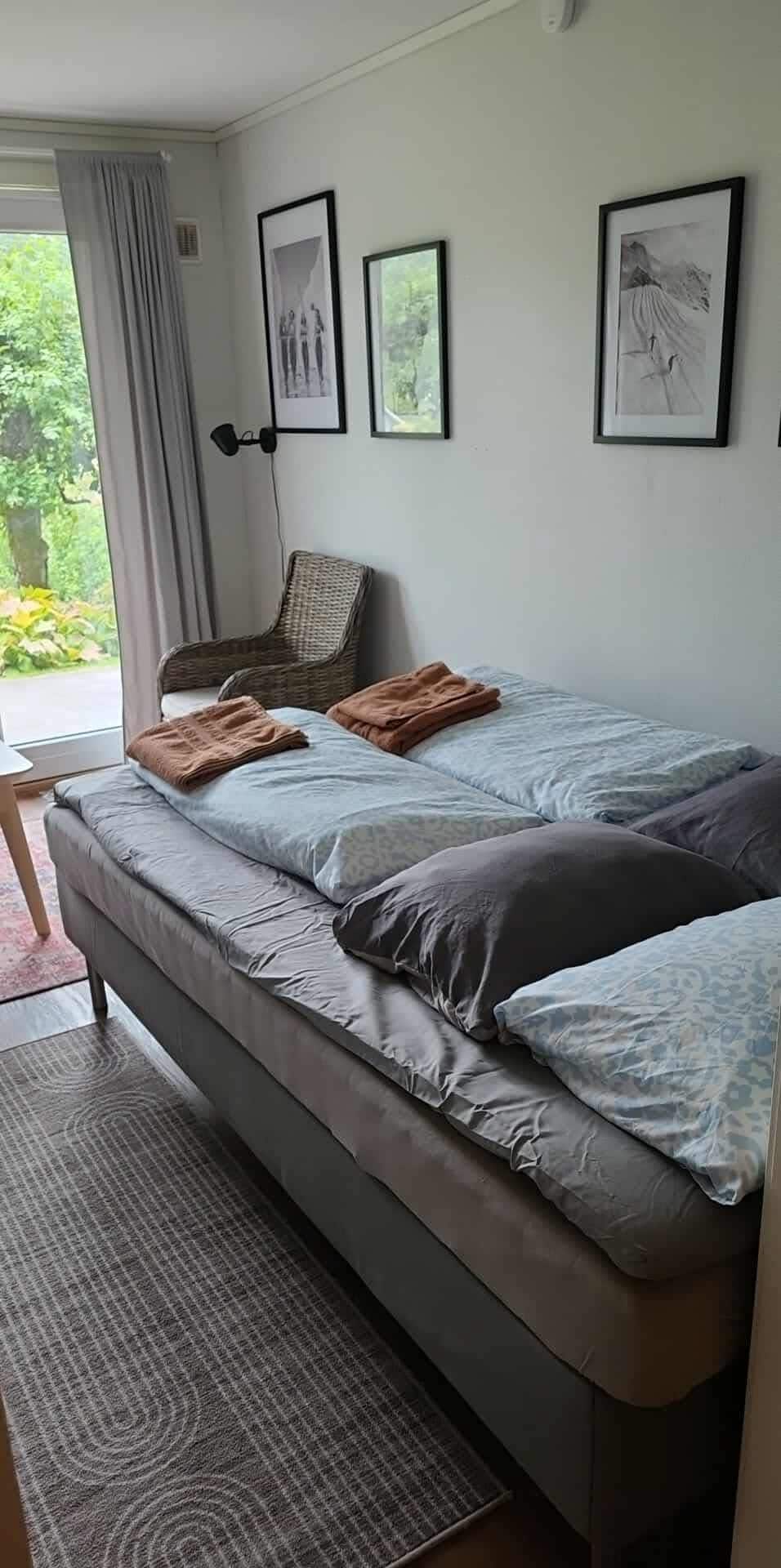 Nuestro hermoso apartamento de 3 habitaciones en la planta baja está disponible para alquilar. Perfecto para una pareja, una familia pequeña o 2-4 amigos. Dos dormitorios separados. Se incluyen sábanas y toallas. La cocina está totalmente equipada para cocinar y comer. Hay TV por cable y un agradable asiento en la sala de estar. Internet inalámbrico rápido. Baño grande con ducha, lavadora y secadora. Bonita vista al fiordo de Sogn y a las montañas. Buenas posibilidades de senderismo. Lugar soleado. Para llegar necesitas un coche.