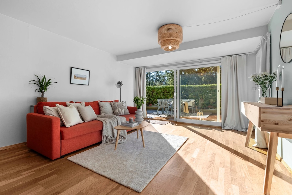 Modern apartment with private entrance in a quiet residential area in the middle of Oslo. Your apartment has a combined living room/kitchen, separate bedroom and bath. All the amenities of home (internet, cable tv, washer/dryer, hair dryer, coffee machine, etc.)! Two minute walk to bus #34 or 5 minutes to Metro (Tåsen) to downtown Oslo and Central Station; airport bus (FB3) a 5 minute walk. We have a city bike available for your convenience.