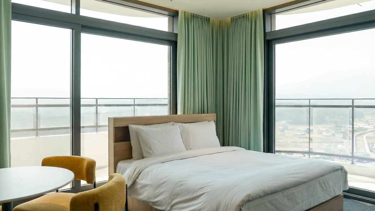 ✨ ¡Centro de la ciudad de Chaoyang-dong! ¡La mejor ubicación y una vista abrumadora! ✨ Disfruta del mejor viaje en una habitación privada en el Sokcho Marina Bay Hotel. - Nuestro alojamiento tiene una excelente accesibilidad, en el centro de la ciudad de Chaoyang-dong, Sokcho. Está cerca de las principales instalaciones, como terminales, e-marts y restaurantes (5-10 minutos a pie) y la playa de Sokcho (15 minutos). Disfruta de una vista panorámica del lago Cheongcho, la roca Ulsanbawi y el mar de Sokcho desde la azotea del octavo piso. Captura el paisaje de Sokcho de un vistazo desde el amanecer hasta la vista nocturna. - El espacio limpio y acogedor está totalmente equipado y cómodo con todas las comodidades como TV, WiFi gratuito, microondas, cafetera, lavadora, purificador de agua e inducción. También se proporcionan comodidades básicas y utensilios de cocina. Hay disponible alojamiento básico para 2 personas (máximo 4 personas), el check-in es después de las 3:00 p. m. y el check-out es hasta las 11:00 a. m. Prohibido fumar en la habitación para un ambiente agradable.