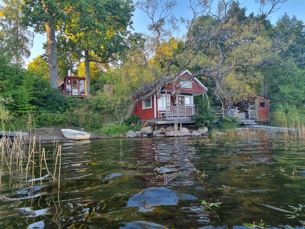 Cabaña en el lago con embarcadero asociado y sauna de leña propia con acceso directo al lago Naten. Cocina al aire libre bajo techo y pequeña playa disponible. A 1 hora de Estocolmo. Aquí vives en medio de una naturaleza exuberante, justo encima del agua, en paz y tranquilidad. El lago se conecta con un río a la reserva natural Båven, ofrecemos canoa. Buena pesca. La casa es sencilla, aquí se aplica la vida bohemia. ¡Vuelve a lo básico! :) Se proporciona agua potable. Inodoro seco con separado disponible. Hay disponible una ducha al aire libre para enjuagarse. Hay refrigerador eléctrico y wifi disponibles.
