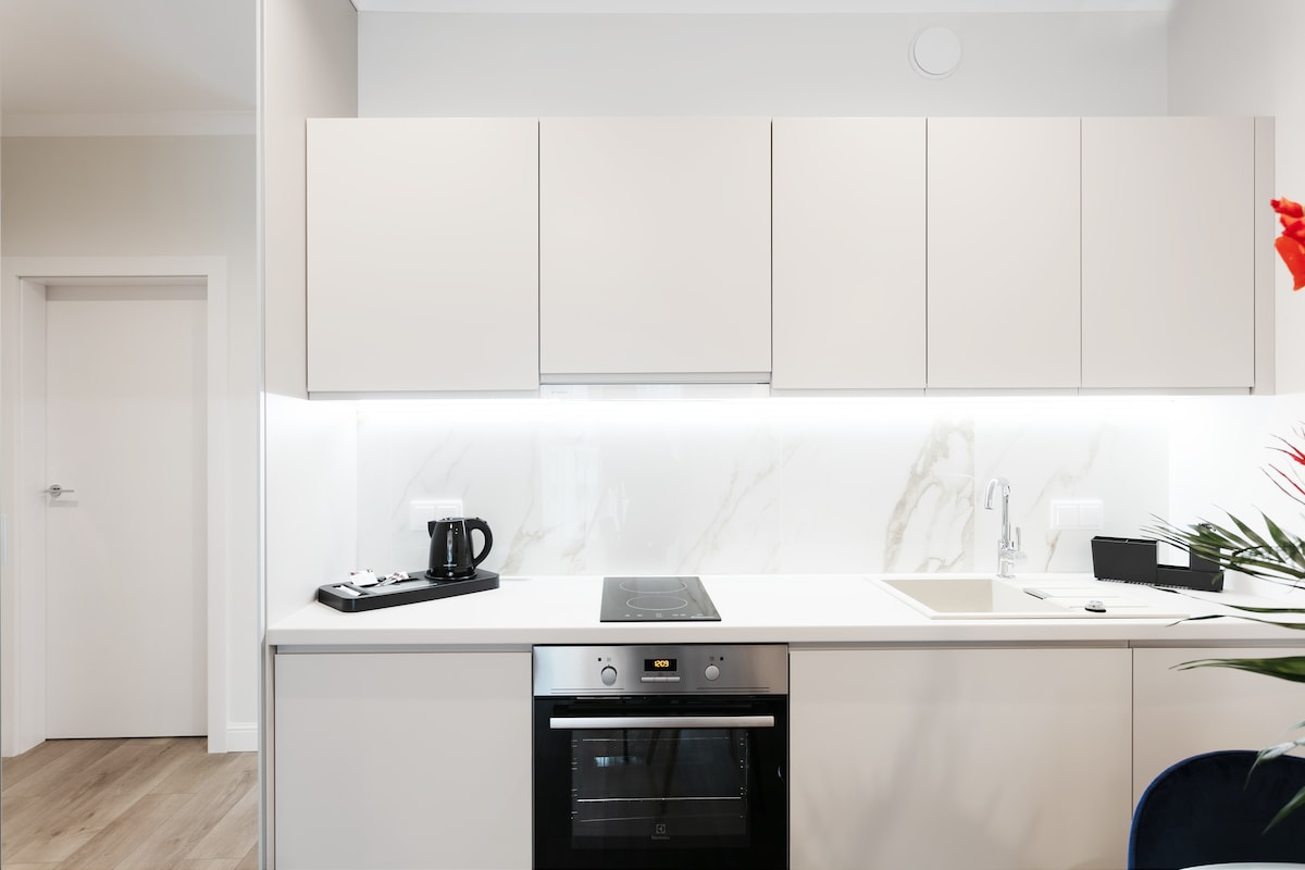 Tuyo Apartments Bokserska es un lugar único en el mapa de Varsovia. El apartamento está diseñado para personas que aprecian los interiores modernos y espaciosos. El apartamento tiene una cocina totalmente equipada con una cafetera, un baño con lujosos cosméticos Rituals, un dormitorio con una cómoda cama y una sala de estar con un sofá cama, aire acondicionado y un televisor inteligente con funcionalidad SmartThings. A petición, el desayuno se puede entregar en la puerta del apartamento (49 zl /noche).