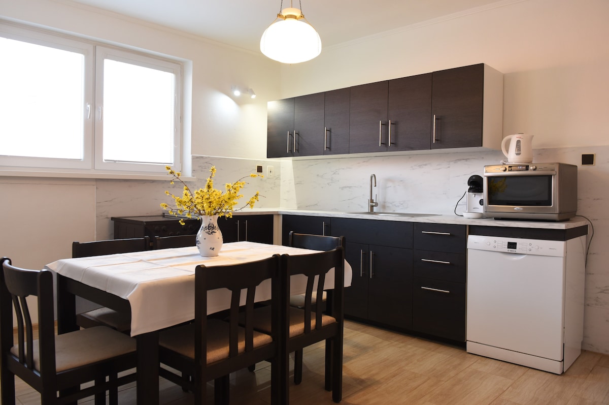 Úplne nový moderný apartmán v tichej časti centra Modry, len pár krokov od historickej Hornej brány a voňavého lesa. Na 55 m² nájdete smart TV, pohodlnú spálňu, kúpeľňu a plne vybavenú kuchyňu s kávovarom a mikrovlnkou. Apartmán má v lete príjemných 22 °C bez klimatizácie. V zime vás zahreje podlahové kúrenie s nastaviteľnou teplotou. Parkovanie zdarma. V pešej vzdialenosti vinárne, reštaurácie a turistické trasy. Veríme, že budete odchádzať s úsmevom a s chuťou vrátiť sa znova :)