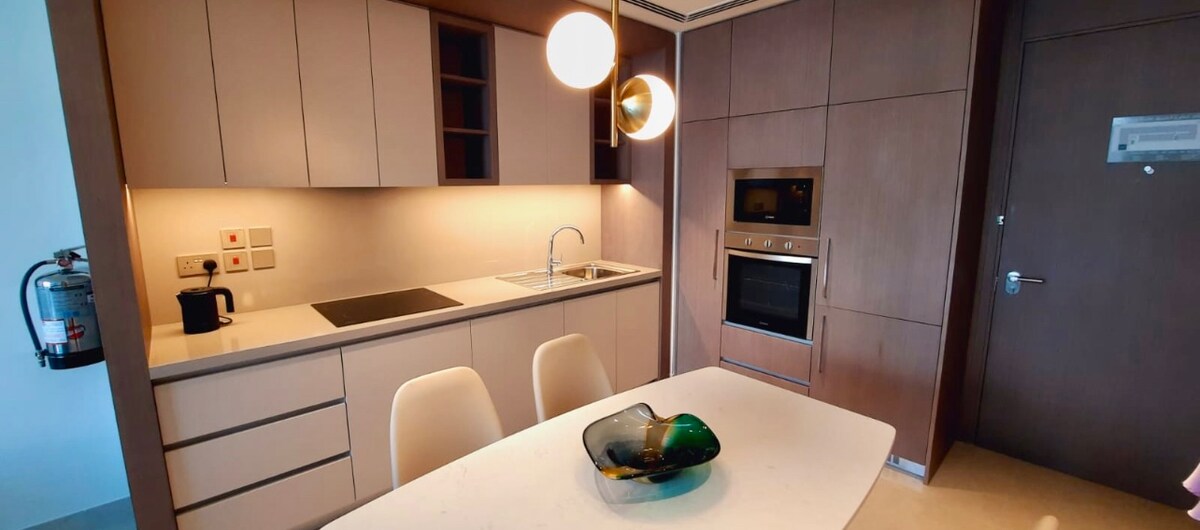 Apartamento moderno con vistas a la ciudad cerca de Marassi Beach & Mall ¡Te damos la bienvenida a tu elegante escapada en el corazón de Manama! Este acogedor y cuidadosamente diseñado apartamento de 1 dormitorio ofrece todo lo que necesitas para una estancia cómoda, a pocos minutos de las principales atracciones de Marassi Beach y Seef.
