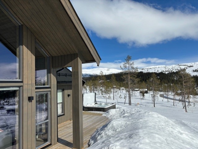 Cabaña nueva y moderna en dos pisos con jacuzzi al aire libre adjunto a la gran terraza. Si tienes un auto eléctrico, puedes usar el cargador de autos eléctricos. La cabaña consta de sala de estar, cocina y sala de estar tipo loft, cuatro dormitorios, dos baños y un gran trastero para almacenar esquís y otros equipos. La sala de estar tiene una chimenea moderna. Wifi, dos televisores con Chromecast están disponibles, así como trona y cuna plegable. La cabaña ha facilitado la alarma de incendios para personas con problemas de audición.