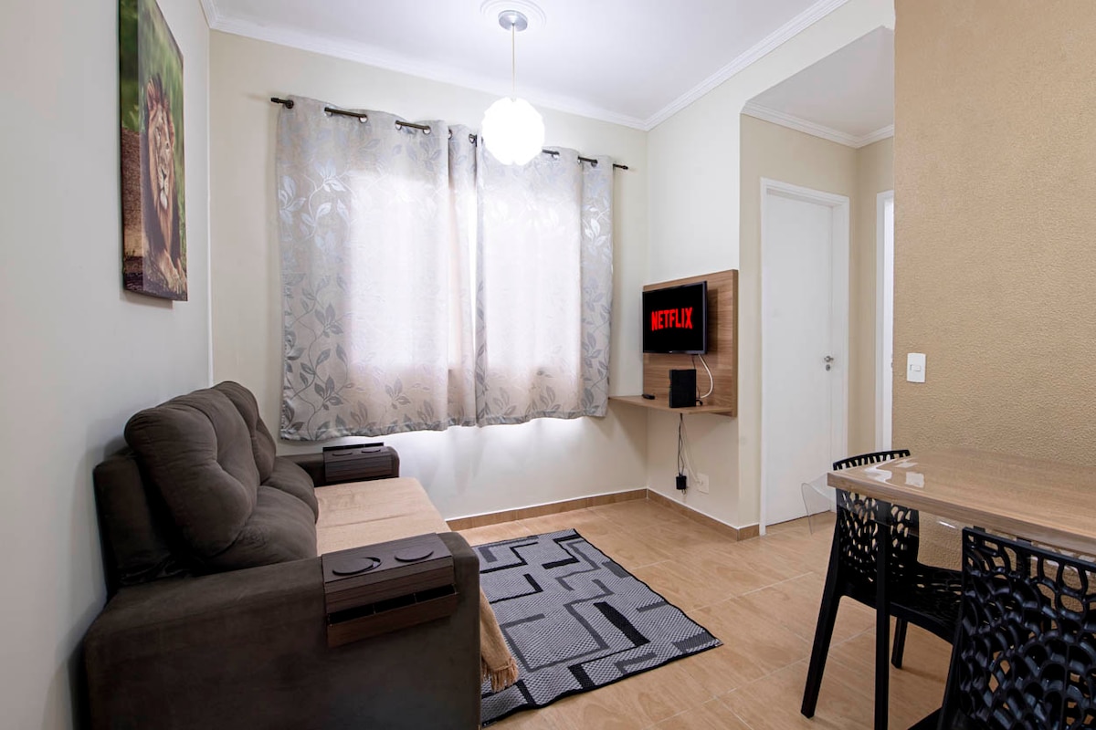 ¿Buscas un lugar tranquilo y conveniente en Sorocaba? Nuestro acogedor y completo apartamento, a 100 metros de Shopping Iguatemi, Iguatemi Business, CPO y a 5 minutos de BOS. Situado en el sofisticado barrio de Campolim, el apartamento es seguro y está bien equipado, ideal para viajes de negocios o de placer. Con excelentes reseñas de los huéspedes. El uso de la piscina requiere un certificado médico, lo que garantiza la seguridad. ¡Reserva ahora y disfruta de lo mejor de Sorocaba con todas las comodidades del hogar!