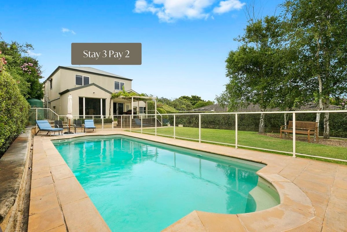 LO MÁS DESTACABLE • TOP 10 Rank w/wide • Jacuzzi • Horno de pizza gourmet y barbacoa en una amplia terraza con toldo • Fuego abierto y fogata 🔥 • PISCINA 🏊♀️ • A 250 m del paseo costero de Coppin 's Track - 850 m a pie de la playa * Playa patrulla de verano de Sorrento/ acceso a piscinas de roca para familias 🌅🏖️🐚 • A 950 m del recinto comercial de Sorrento, gran café, restaurantes, boutiques. ☕️ • Área de estar de planta abierta y cocina de animador • Calefacción y REFRIGERACIÓN inteligentes en TODAS LAS HABITACIONES