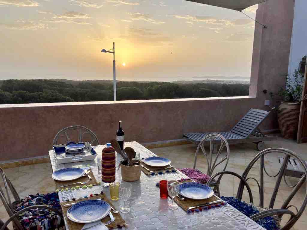 Construida con materiales locales tradicionales, la villa presenta un diseño Beldi Chic que hace eco de la rica artesanía de Marruecos. Con vistas al mar y enclavada en la naturaleza a solo 25 minutos de Esauira, la villa cuenta con 4 dormitorios con baño privado, ropa de cama de calidad hotelera y acceso a un jardín de 2200 m². Los huéspedes pueden llegar a la playa de arena a través de un corto paseo a través de las dunas. Con energía solar y conciencia ecológica, es el lugar perfecto para relajarse. Se recomienda un auto para hacer las compras y facilitar el acceso.