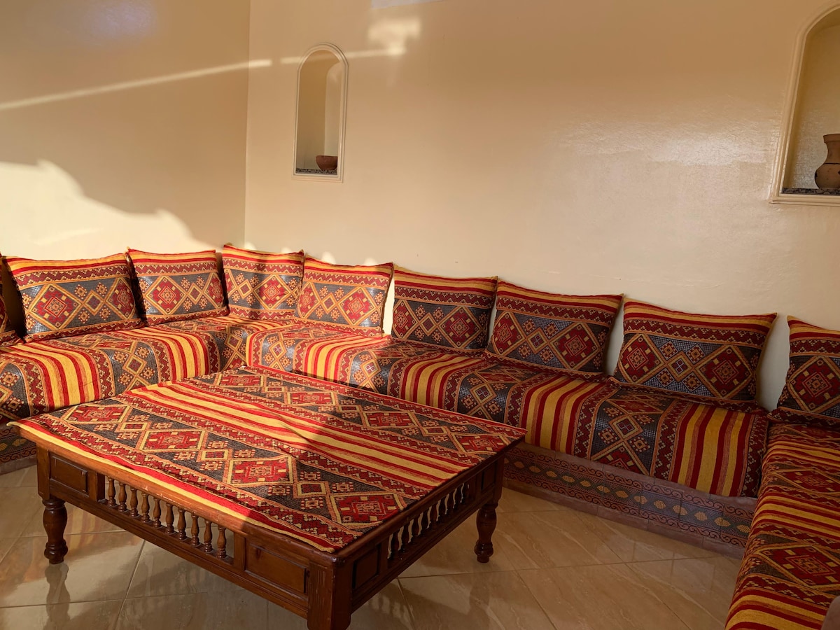 Bienvenido a nuestra encantadora villa situada en la carretera nacional entre Safi y Oualidia, a solo 16 km de Safi y a 5 km de la playa Lalla Fatna. Nuestra casa ofrece una gran piscina para refrescarse, dos cómodas habitaciones, una sala de estar tradicional marroquí y una plaza de aparcamiento para su auto. A 13 km de la playa Cap bedouza y 38 km de Oualidia, es el lugar ideal para unas vacaciones relajantes. Importante: piscina mantenida por mí mismo todos los días ( unos 30 minutos).