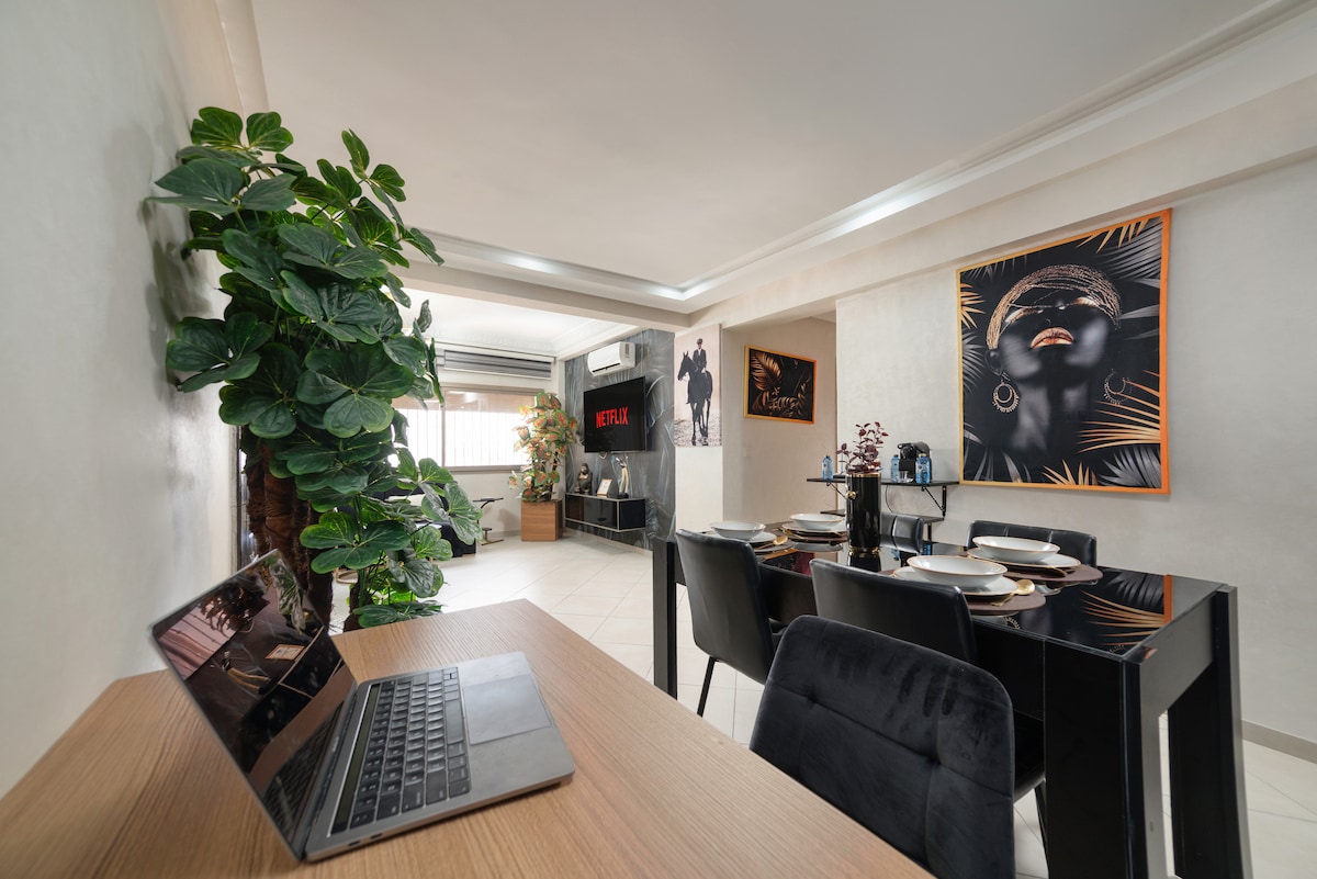 ✨Welcome to your stylish accommodation in the heart of Agadir!🌞 This modernly furnished apartment offers the perfect retreat for a relaxing stay, whether you're travelling for business or leisure The apartment is located in a quiet and safe area, yet centrally positioned Only 3 minutes’ walk from Souk El Had 🚗 5 min from Stade Adrar 🚗 9 min from the beach The area is close to restaurants, shops, and several supermarkets, including Carrefour. 2 min walk to CTM 🛬 Easy to reach from the airport