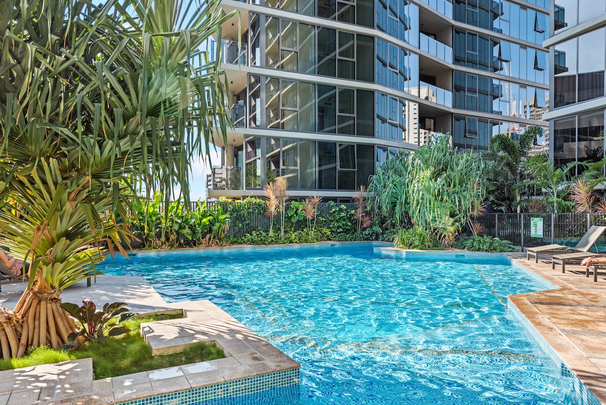 Perfecto para viajeros de negocios y parejas. ¡Disfruta de este apartamento céntrico de 1 dormitorio solo para ti! Ubicado en el piso 11 de Brisbane One Tower 2, este elegante apartamento está a poca distancia a pie de: South Bank Parkland (800 m) Centro de Artes Escénicas de Queensland (1,2 km) GOMA (1,2 km) Brisbane CBD (a 25 minutos a pie) Estación de South Brisbane (800 m) Estación de autobuses del centro cultural (12 minutos a pie) West End: restaurantes vibrantes, cafeterías y tiendas boutique y tiendas de comestibles, todo a un paseo de distancia.