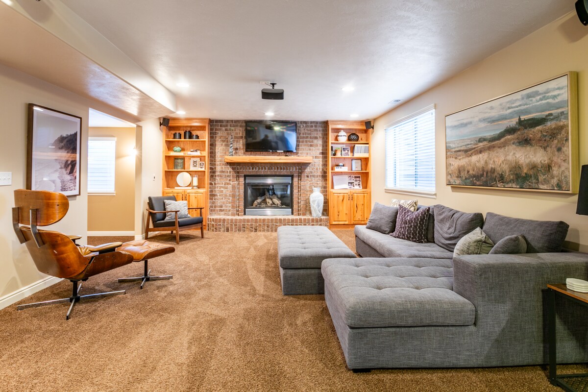 Trae a toda la familia a este elegante lugar con mucho espacio para la diversión, los juegos y la relajación. Cocina completa, suite principal, bañera, televisores en cada habitación, lavandería y sala de cine. Cerca de estaciones de esquí, lagos, pesca, senderismo, ciclismo en hermosas montañas. Excelentes restaurantes, spas, tiendas y entretenimiento. Este es un apartamento en EL SÓTANO. A 25 minutos del aeropuerto, a 30 minutos del esquí y a 25 minutos del centro de Salt Lake City. Sin cargos por servicios públicos, estacionamiento para 2 automóviles, vecindario muy seguro