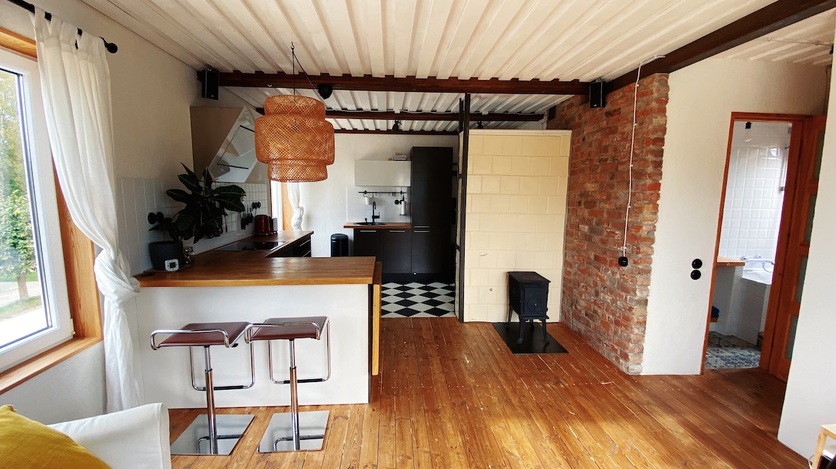Relájate en las prisas diarias de esta casa tranquila y soleada. ¡A solo 300 metros de las heladas, arena blanca y puestas de sol únicas en la playa de Liepaja! Perfecto para una pareja para escapar del ajetreo y el ajetreo de la vida cotidiana y disfrutar del descuido de tus vacaciones. También habrá una zona de dormitorio extra para una pequeña. El potente internet te permitirá hacer tu trabajo en un entorno tranquilo. Al llegar a casa de la playa, podrás cenar y comprar el helado más delicioso para una escapada nocturna en la actual isla TC “XL”.