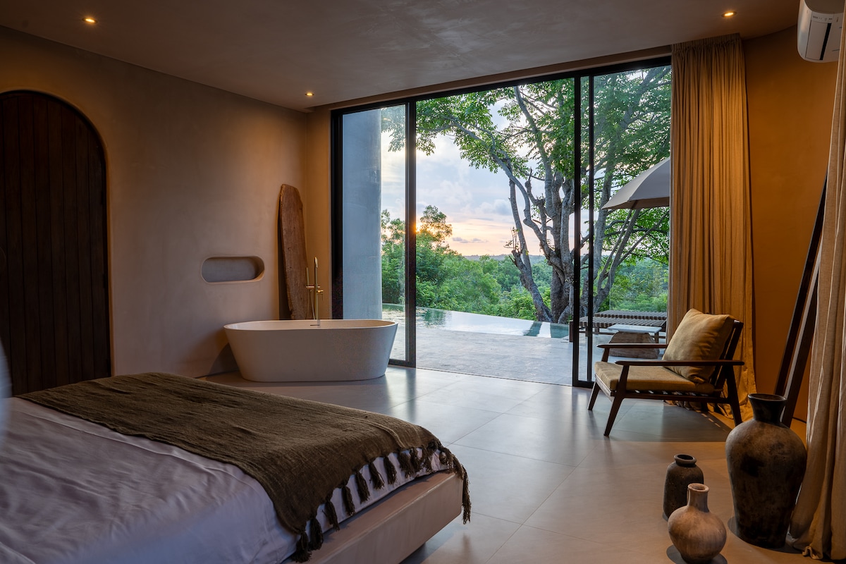 Bienvenido a HUTAN, una serena colección de cinco espaciosas suites de un dormitorio inspiradas en el diseño Japandi, donde la simplicidad natural se encuentra con la comodidad moderna. Cada suite ofrece aproximadamente 75 metros cuadrados de espacio habitable bellamente diseñado, completo con un patio privado con vistas a la exuberante vegetación tropical. En el interior, encontrarás una cómoda cama, TV inteligente, Wi-Fi de alta velocidad, un escritorio y un baño completamente nuevo con elegantes acabados modernos y mucha luz natural.