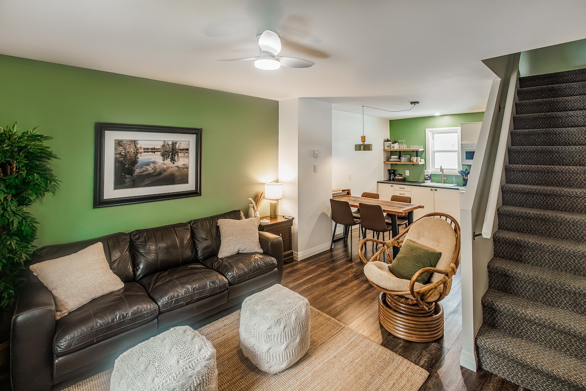 ¡Es hora de relajarse! Ven a explorar Muskoka, lejos del ajetreo de la vida cotidiana. Nuestro espacio limpio y acogedor está a pocos pasos del hermoso centro de Huntsville; todo el tiempo, estando en una calle tranquila y sin salida. A poca distancia en coche de Arrowhead Park, donde te proporcionaremos el pase de visitante, junto con patines y raquetas de nieve para patinar en su pista de patinaje al aire libre iluminada con fuego (dependiendo del clima) y explorar el parque. ¡Experimenta la vida lenta, llena tu calendario o ambos!