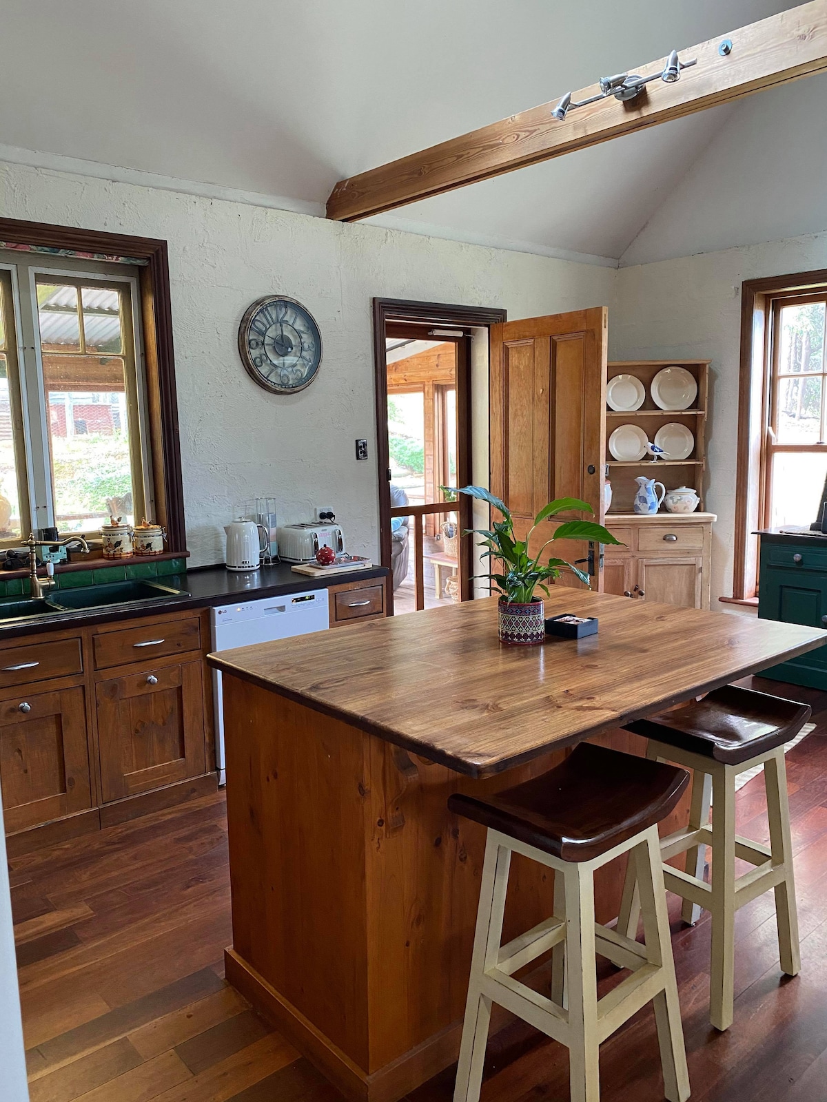 The Green Welly is the most beautiful little farm stay located within walking distance from the centre of Bridgetown, sleeping 6 to 8 people. The Main House has 3 x King/Queen bedrooms, sleeping up to 6 people. If needed, The Nook is the 4th Dbl bedroom/bathroom and is located in a converted cellar below, and can be added upon request. Stunning views of the rolling hills from the multiple veranda's, and 2 x pot belly fireplaces.