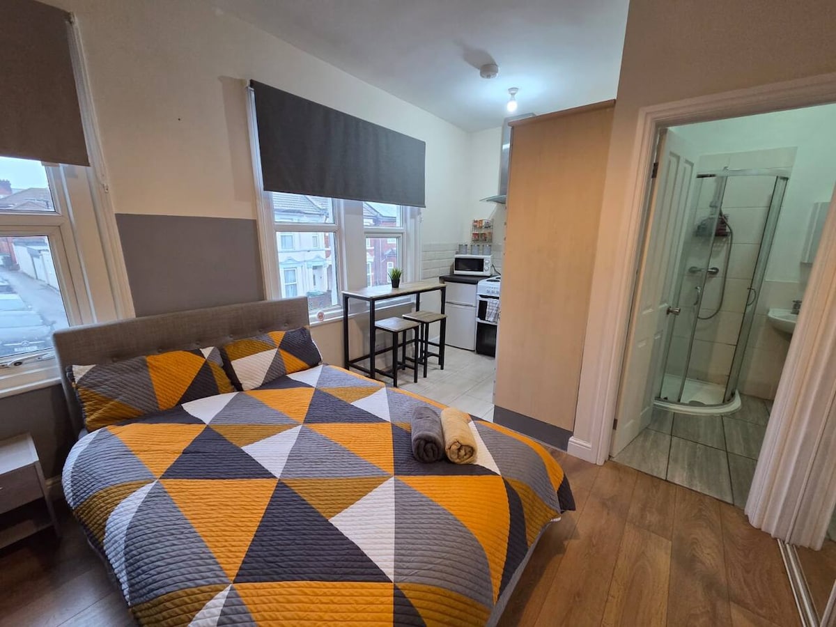 Welcome to our bright and stylish large 2-bedroom apartment in the heart of Southampton. Perfect for families, couples, business travellers, or friends visiting the city. Two comfortable bedrooms. En-suite bedroom - a double bed. Bedroom two- Two single beds Spacious open-plan living area with cosy sofa, smart TV, and dining space. Fully equipped kitchen with everything you need to cook and enjoy meals at home. Modern bathrooms. Free WiFi