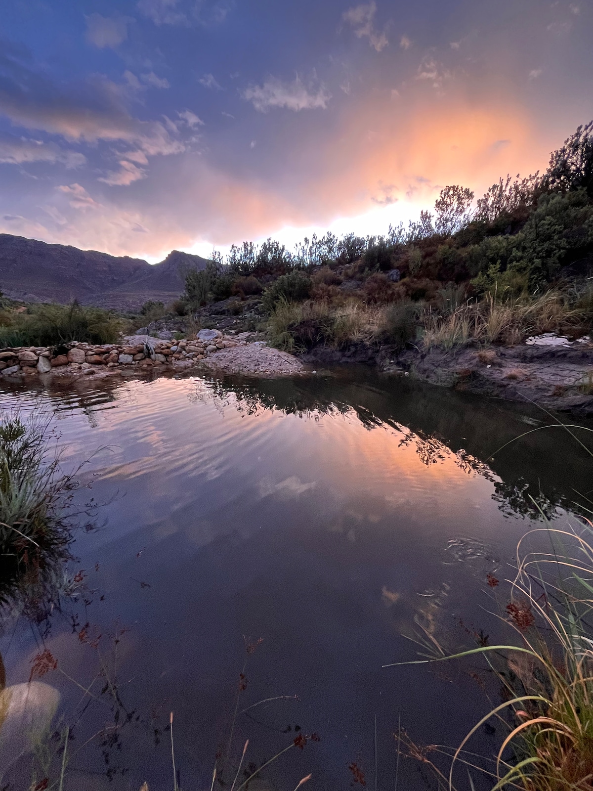 Private Boat-Access Karoo Retreat on Route 62 | Hot Tub & Total Seclusion You are the only guests. A 100% private romantic retreat in the Little Karoo, accessible only by boat. Soak in your private wood-fired hot tub, watch the mountains turn gold at sunset, and reconnect under some of the clearest night skies in South Africa. No neighbours. No shared spaces. Just mountains, water, wildlife and silence.