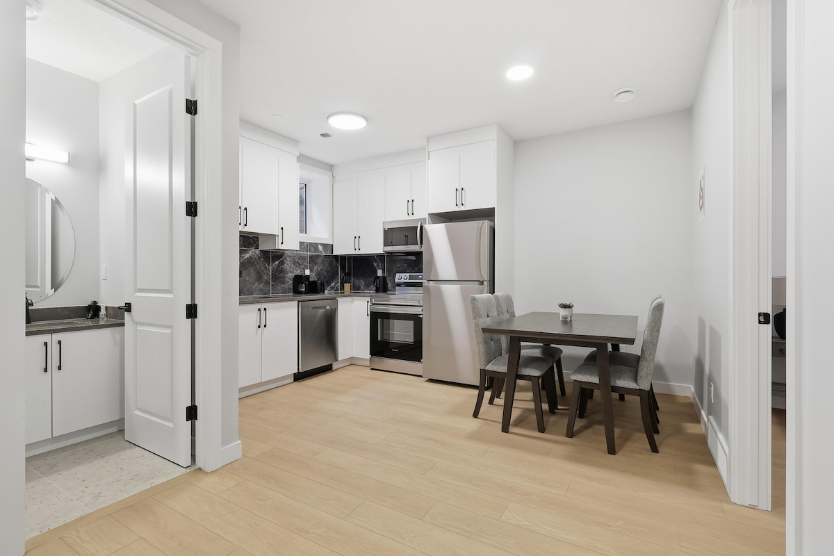 Unidad moderna de 1 dormitorio | Ubicación central privilegiada Esta nueva casa adosada de 1 dormitorio y 1 baño ofrece la combinación perfecta de comodidad, conveniencia y ubicación para tu estancia en Calgary. Habitaciones: 1 habitación amplia con amplio espacio de almacenamiento Baños: 1 baño moderno de 3 piezas *** Cocina completa * ** Equipada con TODO LO que necesitas Lavandería en la unidad para mayor comodidad Wifi de alta velocidad y TV inteligente Ubicación inmejorable: A 5 minutos de SAIT A 10 minutos de Stampede Grounds y del centro de la ciudad A 10 minutos de la Universidad de Calgary