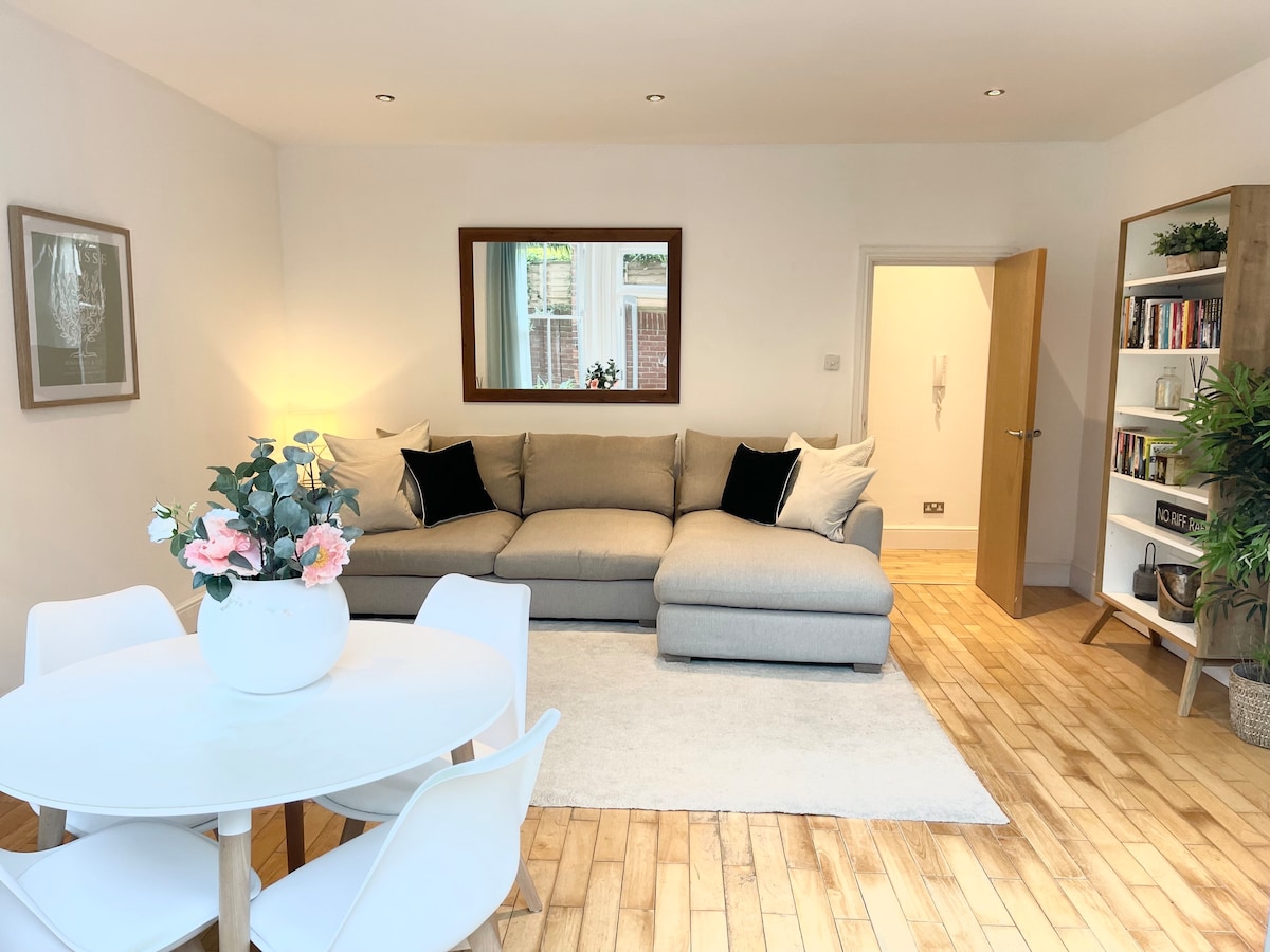 🎩The "Top Hat" apartment. Very clean, large self-contained, by the green expanse of Southsea Common & the seafront. A breath of fresh air! Take a quiet early morning stroll without the tourists. Although shops, bars & restaurants are only a stone's throw away, the area feels peaceful and secluded. Very private. Smart TV's with Xbox. Come & enjoy fabulous Southsea. Your adventure is ready & waiting. All it needs now is you! Host on site if needed. 🚘12hr/24hr street parking permits £5/£10 each.
