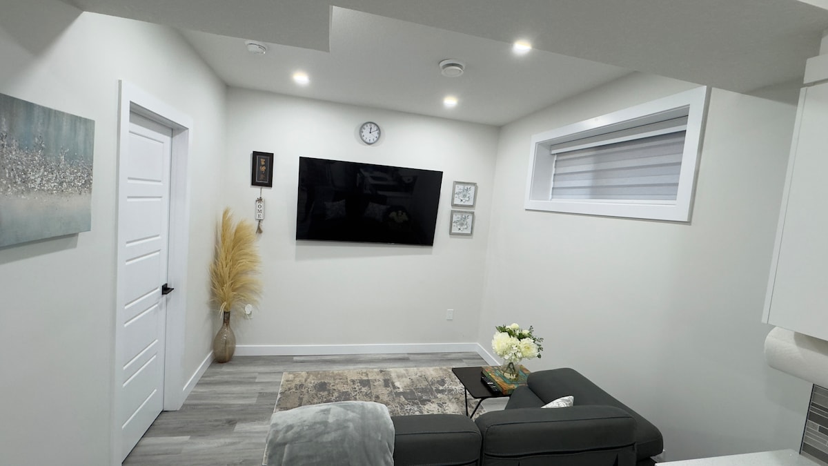 Una suite limpia en el sótano de un huésped en un barrio tranquilo en el suroeste de Edmonton y a 15 minutos en coche del aeropuerto internacional. La suite tiene una entrada privada con una cerradura inteligente y está equipada con wifi, canales de TV, chimenea eléctrica interior, lavandería y termostato automático separado. La cocina está bien equipada con electrodomésticos funcionales como nevera, cocina eléctrica, microondas, hervidor y cafetera. ¡Limpio y un gran lugar para hacer de tu hogar lejos de casa!