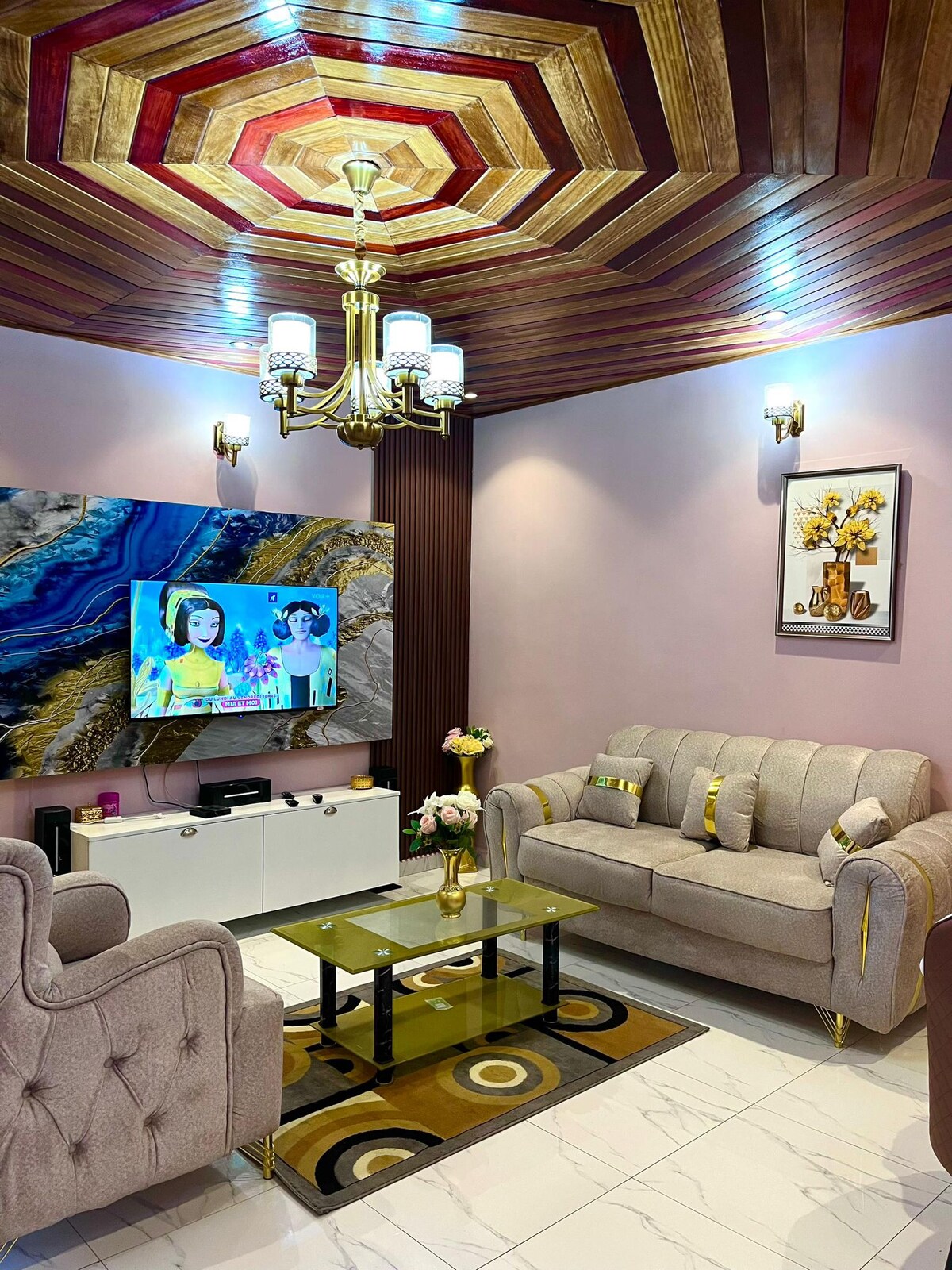 Ici, le bonheur est fait maison. Dans un quartier résidentiel, calme et discret, profitez d'une magnifique maison avec jardin, confortable et bien équipée. Ce logement unique et joliment décoré est doté de batteries d'alimentation en cas de coupures d'électricité et de la fibre optique qui vous donne un accès Internet par Wi-Fi rapide et illimité. Le prix inclus les services d'une ménagère. En famille ou entre amis, chacun se sentira comme chez lui dans ce logement spacieux et reposant.