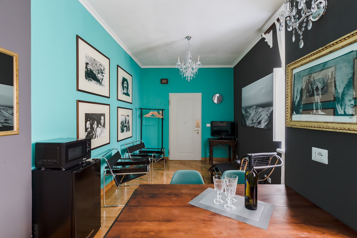 Apartamento grande en el centro histórico en un barrio muy elegante junto a los hoteles más lujosos de la ciudad Westin Excelsior, The St.Regis, cerca de Piazza di Spagna, Fontana di Trevi y Villa Borghese. Junto a la casa se encuentra la Embajada de los Estados Unidos (vigilada las 24 horas del día). La casa tiene una superficie de 145 metros cuadrados, techos con frescos de 5,30 m de altura y ha sido renovada por el estudio de arquitectura P+S Palomba Serafini Milan. Los muebles constan de diseño icónico y piezas vintage. Licencia n.°: 16191
