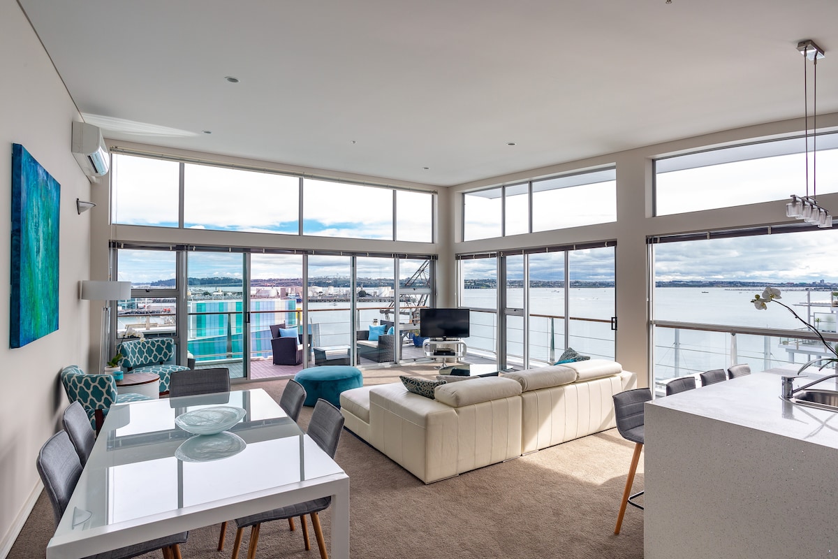 The prestigious and luxury North-West Loft alone occupies the prime, north-end penthouse position of Princes Wharf’s Shed 22. Simply one of the prime viewing spots from the City with close-up action that is spectacular! Travelling far or near, this 3-bedroom, 2-bathrm apartment with wrap-around deck, and carpark, includes additional luxury comforts well worth considering (see below).