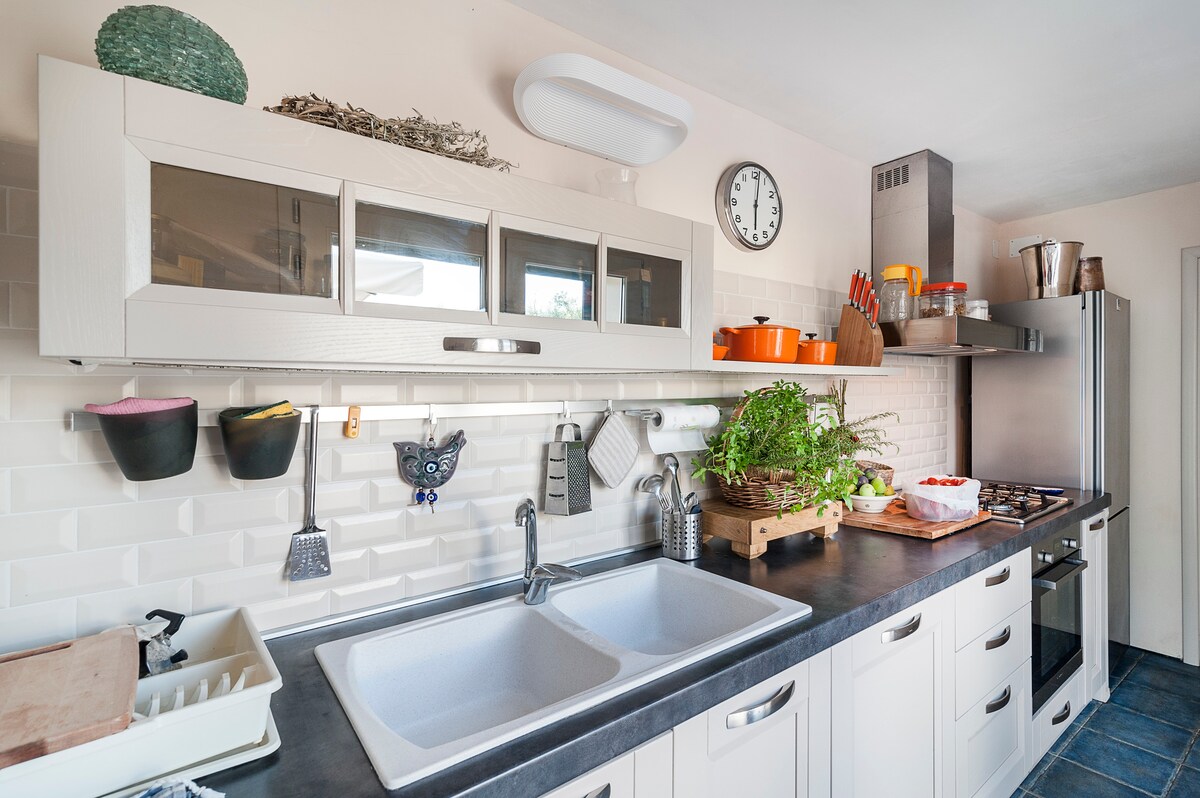 Te sentirás en el cielo en los sofás de la terraza del centro histórico. Azul por todas partes: el cielo y el mar se funden. El silencio solo lo rompen las voces de las gaviotas. Los aperitivos al atardecer y las noches llenas de estrellas serán inolvidables. El hogar ideal para aquellos que buscan tranquilidad y paz: acogedor, limpio y familiar, con un diseño elegante y exclusivo. Desde el típico patio del centro histórico, dos tramos de escaleras te llevarán al ático. Recientemente renovado y amueblado con cuidado por los detalles más pequeños, está listo para darte la bienvenida a unas vacaciones de ensueño. Cuenta con salón, cocina bien equipada con lavavajillas, 1 dormitorio con chimenea, 1 dormitorio con TV y escritorio, 1 baño y 2 preciosas terrazas para uso exclusivo. PLUS 1: TERRAZA EXTREMADAMENTE POCO COMÚN AL MISMO NIVEL DEL APARTAMENTO: equipada con cocina al aire libre, mesa de comedor a la sombra de la pérgola de bambú y gran ducha al aire libre hecha de azulejos típicos de Salento. Así que puedes, a través del gran ventanal de la sala de estar, cocinar, almorzar, relajarte o tomar una ducha refrescante directamente en la terraza. PLUS 2: EXCLUSIVA TERRAZA SUPERIOR: una escalera de unos pocos escalones te llevará a la gran terraza con vistas al mar de la playa de Purità: equipada con sofás integrados, una espaciosa pérgola de bambú para refugiarse del sol, tumbonas de colores y una gran mesa para cenar bajo las estrellas. • ¡La casa y las terrazas son para tu uso completo y exclusivo! • El apartamento es adecuado para amigos adultos y familias con niños. • Tenemos un potente aire acondicionado y wifi, gratis para nuestros huéspedes. • Hay lavavajillas y lavadora disponibles. Una persona de confianza te entregará las llaves a tu llegada. Para cualquier necesidad, puedes ponerte en contacto con nosotros por teléfono, correo o WhatsApp. Instagram @mactoia Esta tranquila casa se encuentra en la histórica ciudad costera de Gallipoli. Camina hasta supermercados, pastelerías, excelentes restaurantes, clubes de moda, el puerto deportivo y la hermosa playa. NIÑOS: En presencia de niños, la gran terraza superior requiere la presencia y supervisión de un adulto. ESCALERA: Para llegar al apartamento hay que subir dos tramos de escaleras. También desde la primera terraza hay una docena de escalones para subir a la terraza superior. ESTACIONAMIENTO: No está permitido entrar en el casco antiguo de Gallipoli en coche: puedes aparcar tu coche en el aparcamiento del puerto deportivo y continuar a pie: la casa está a unos 200 metros de distancia.