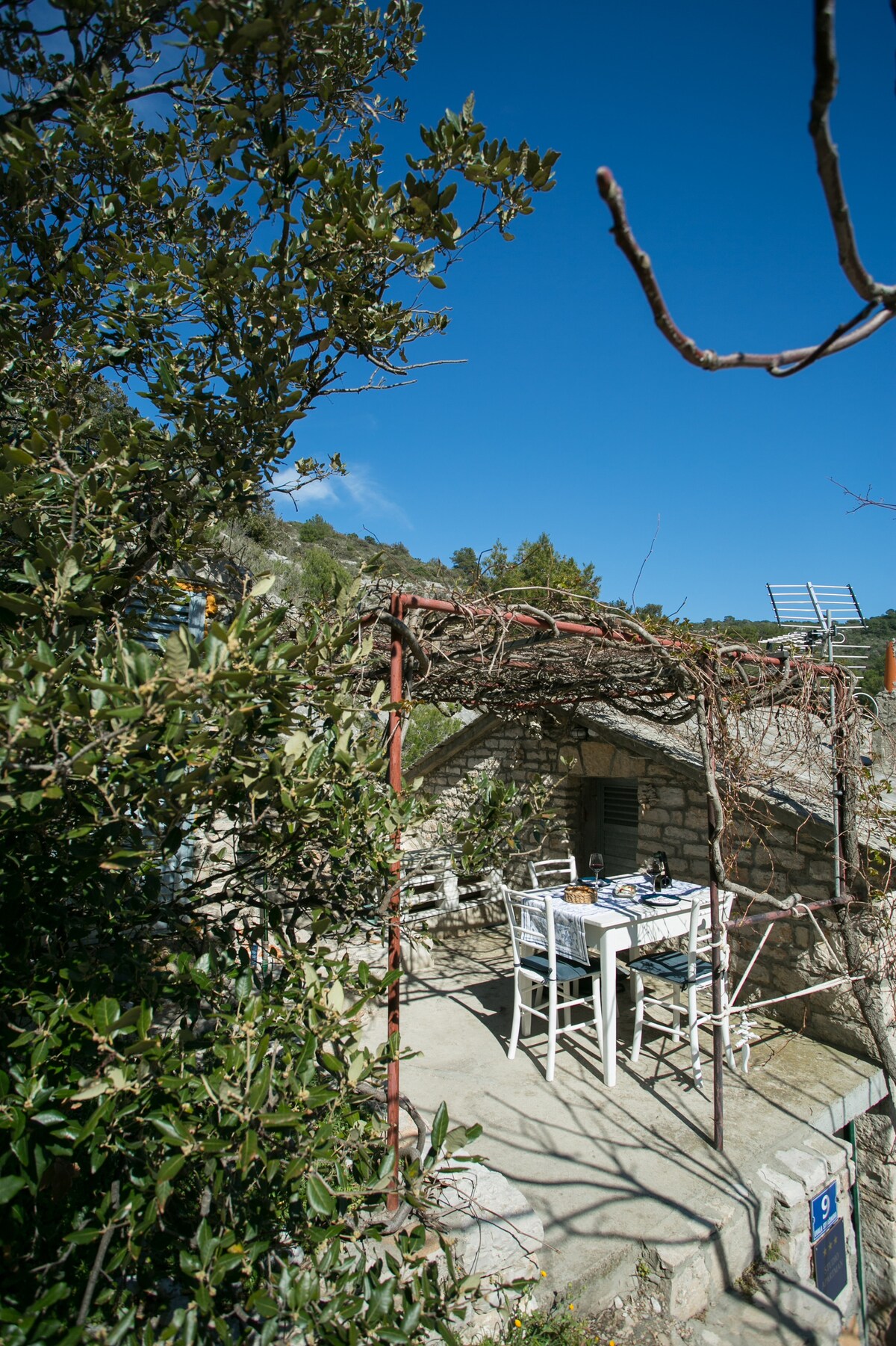 Villa Domenika es una casa antigua pero renovada que se encuentra en un pueblo tranquilo y montañoso con una vista asombrosa del mar abierto. Este remoto pueblo ofrece un ambiente tranquilo y silencioso. Está situado lejos de las multitudes y el tráfico, pero lo suficientemente cerca como para llegar fácilmente a mercados, restaurantes y playas. La playa más cercana está a 5 minutos. El restaurante está en la playa. El mercado más cercano está a 10 minutos en auto. Este pueblo se encuentra entre dos ciudades, Hvar y Stari, cada una a 5 km.
