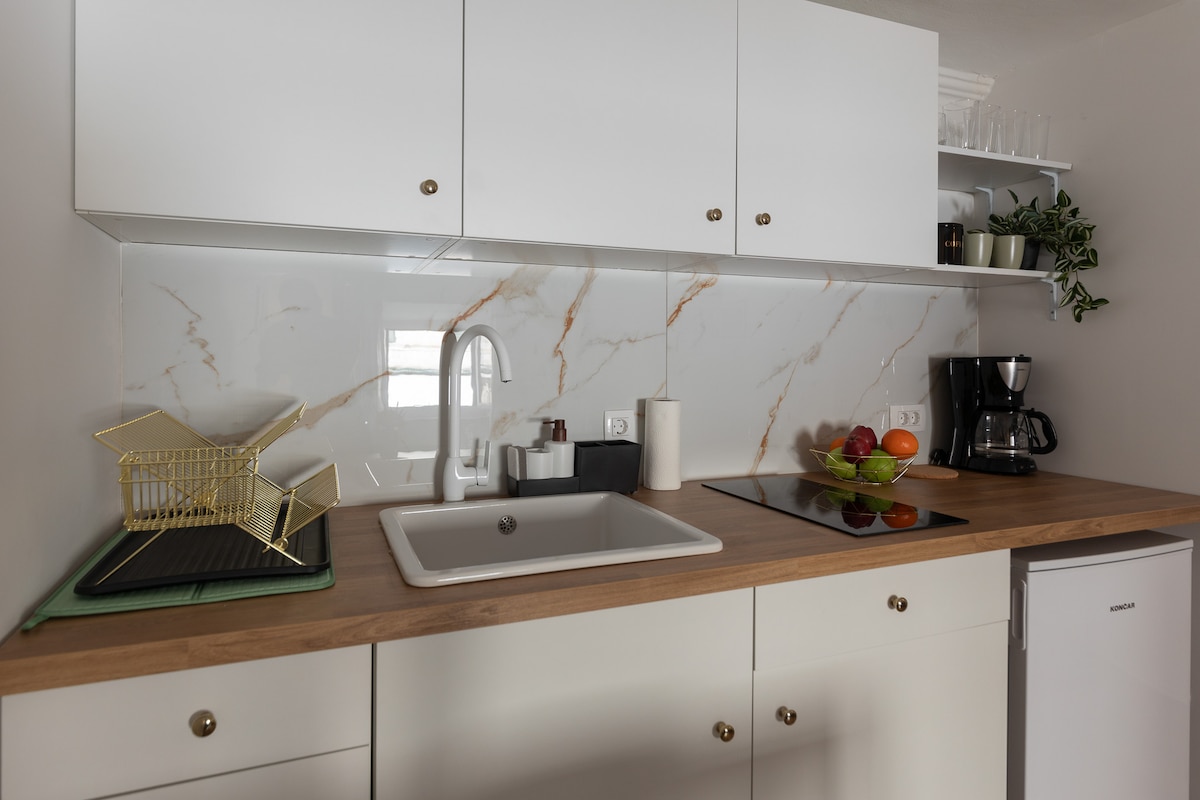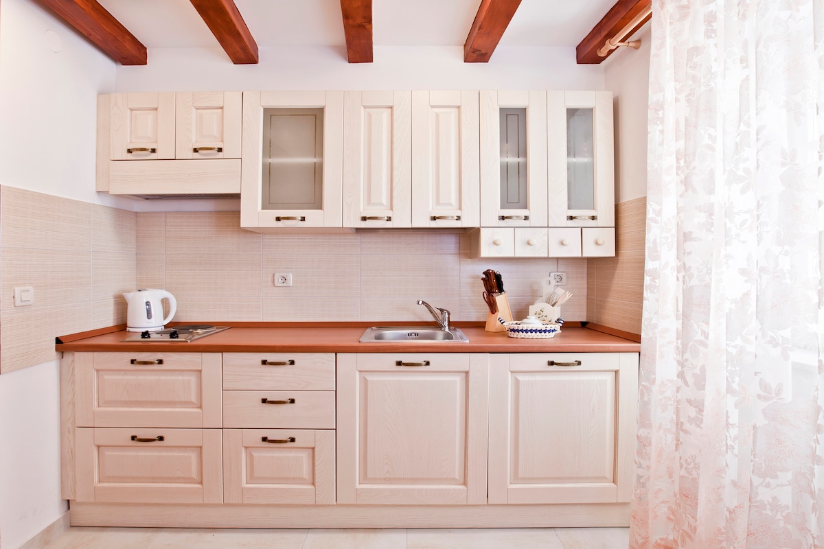 Moderno apartamento en el primer piso equipado para 3 personas y situado en el corazón del casco antiguo de Dubrovnik, e incluye un dormitorio con cama doble, cocina totalmente equipada, baño, sala de estar con sofá cama, aire acondicionado, WiFi, TV, lavadora, ventanas insonorizadas, sábanas y toallas limpias, parada de autobús a 2 minutos a pie, cerca de la panadería, bares, restaurantes, playas. Autoregistro con la caja de seguridad o check-in con ayuda del anfitrión bajo petición. Visita nuestra recomendación de qué visitar