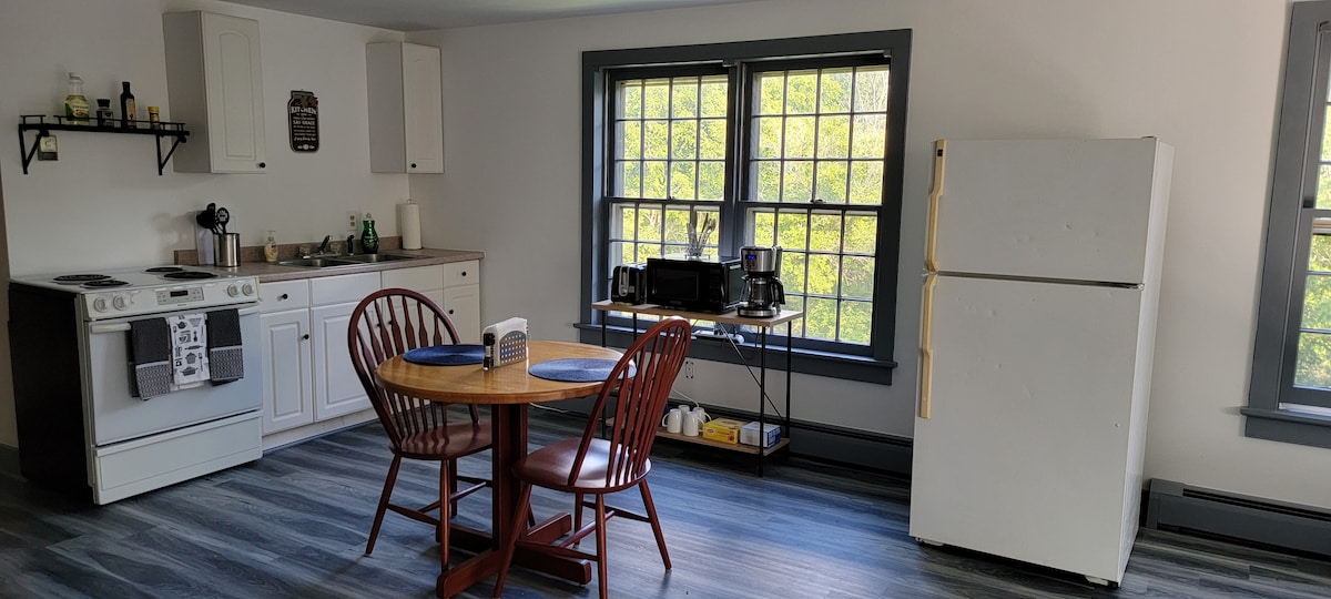 Relajante entorno rural aislado de una larga entrada privada, en una calle sin salida, en el histórico Líbano, Connecticut. Los caballos bordean la entrada y las gallinas deambulan por el patio. Amaneceres sobre el patio trasero entre las colinas cubiertas de árboles. El apartamento privado, adjunto a la casa principal, incluye un dormitorio, sala de estar, cocina, baño y porche. Sé testigo del bullicio de la granja activa. Relativamente cerca de casinos emblemáticos (Foxwoods y Mohegan Sun), senderismo, la costa y sitios históricos.