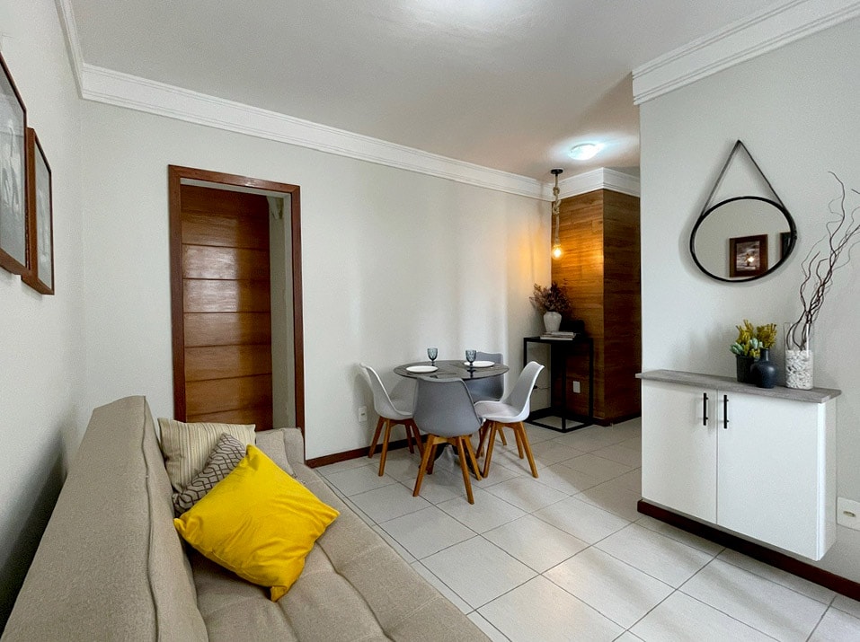 Amplio apartamento de 1 dormitorio en una calle tranquila a poca distancia a pie de la playa, centro comercial y transporte público. Situado en el sexto piso de un edificio de apartamentos (ascensor y aparcamiento privado). Ideal para vacaciones, carnaval, estudio y trabajo a distancia. Espaçoso apto quarto-sala no 6o andar (c/ elevador) de um prédio familiar c/ garagem localizado em rua tranquila perto da praia, do shopping Barra e com fáceis opções de deslocamento. Ideal para vacaciones, carnaval, estudios y trabajo remoto.