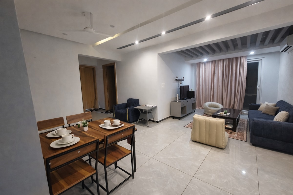 Experience a comfortable 2BHK stay just minutes from Srinagar Airport, ideal for families, couples, and travelers. Why guests love this stay: ✈️ 10 mins from Srinagar Airport 🏔️ Private balconies 🔥 Hot & cold AC 👨👩👧 Ideal for families & small groups 🍳 Fully equipped kitchen 🚗 Free parking 🛒 Convenience store in the society Spacious 1200 sq ft apartment with clean, modern interiors. Please note: Wi-Fi is not available. Mobile network works well. Enjoy a comfortable stay in Srinagar.